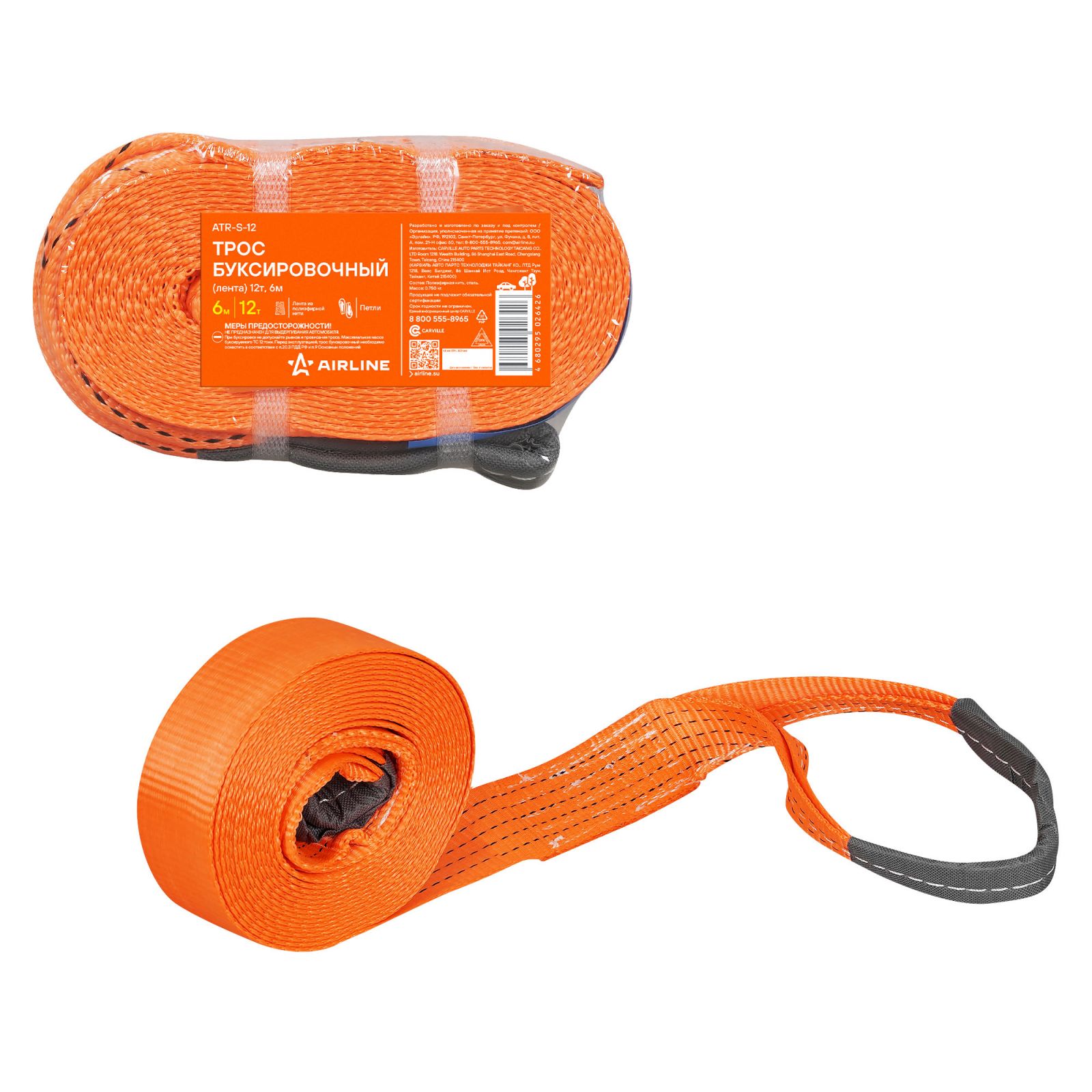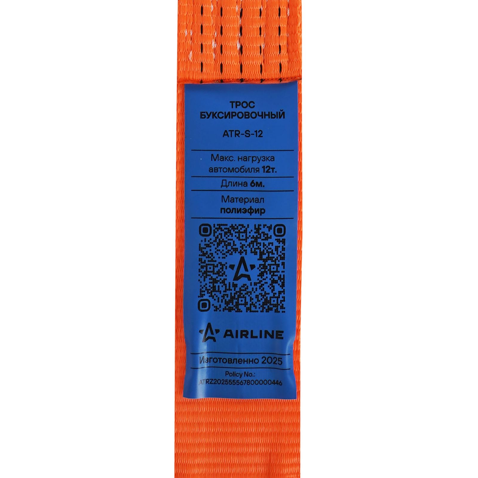 Трос буксировочный (лента) 12т, 6м, без крюков (ATR-S-12)