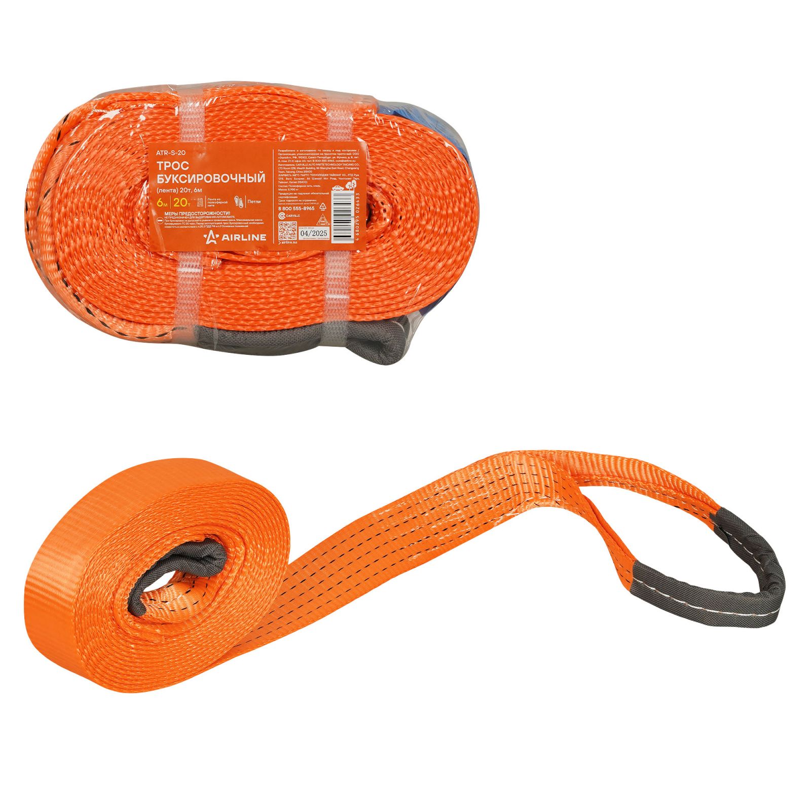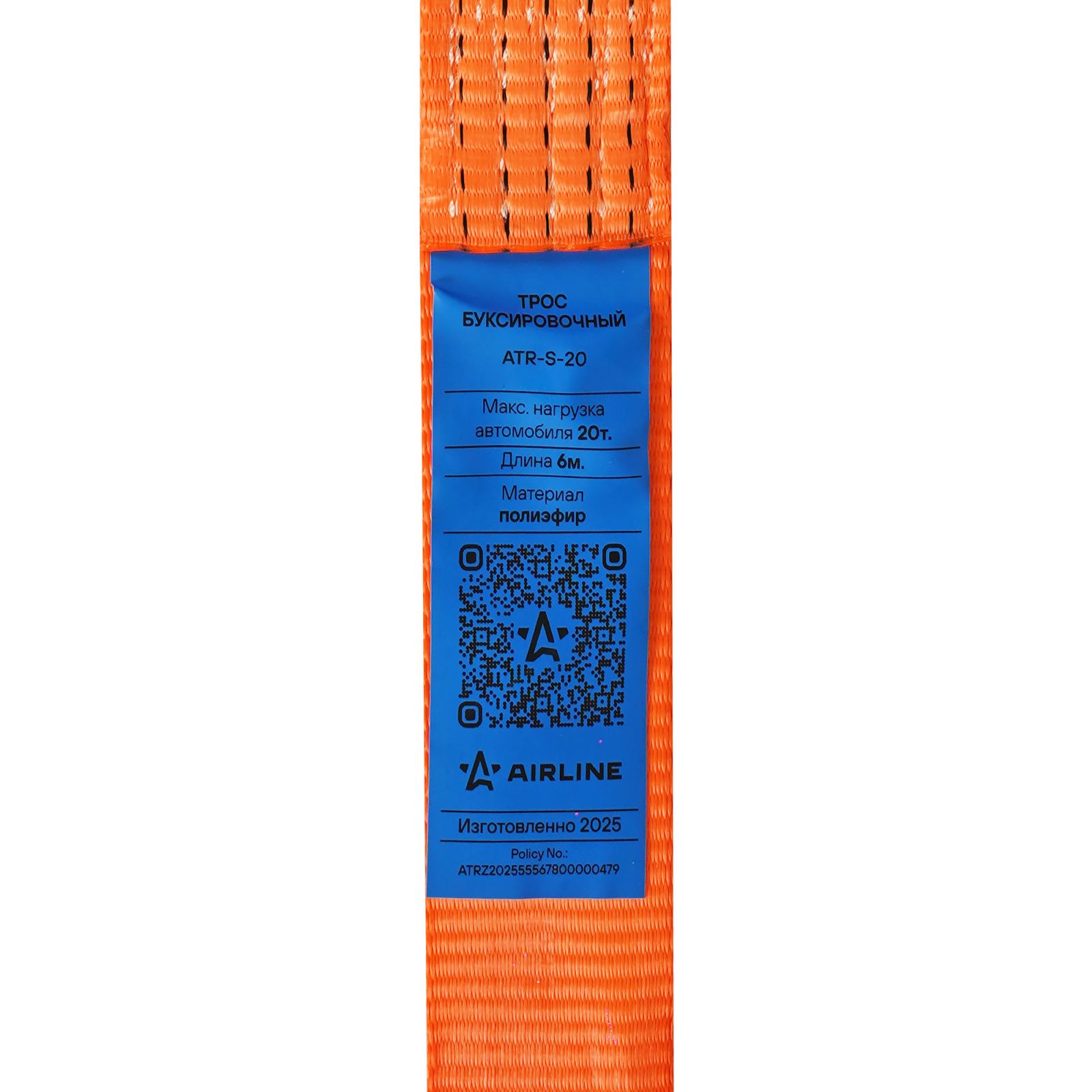 Трос буксировочный (лента) 20т, 6м, без крюков (ATR-S-20)