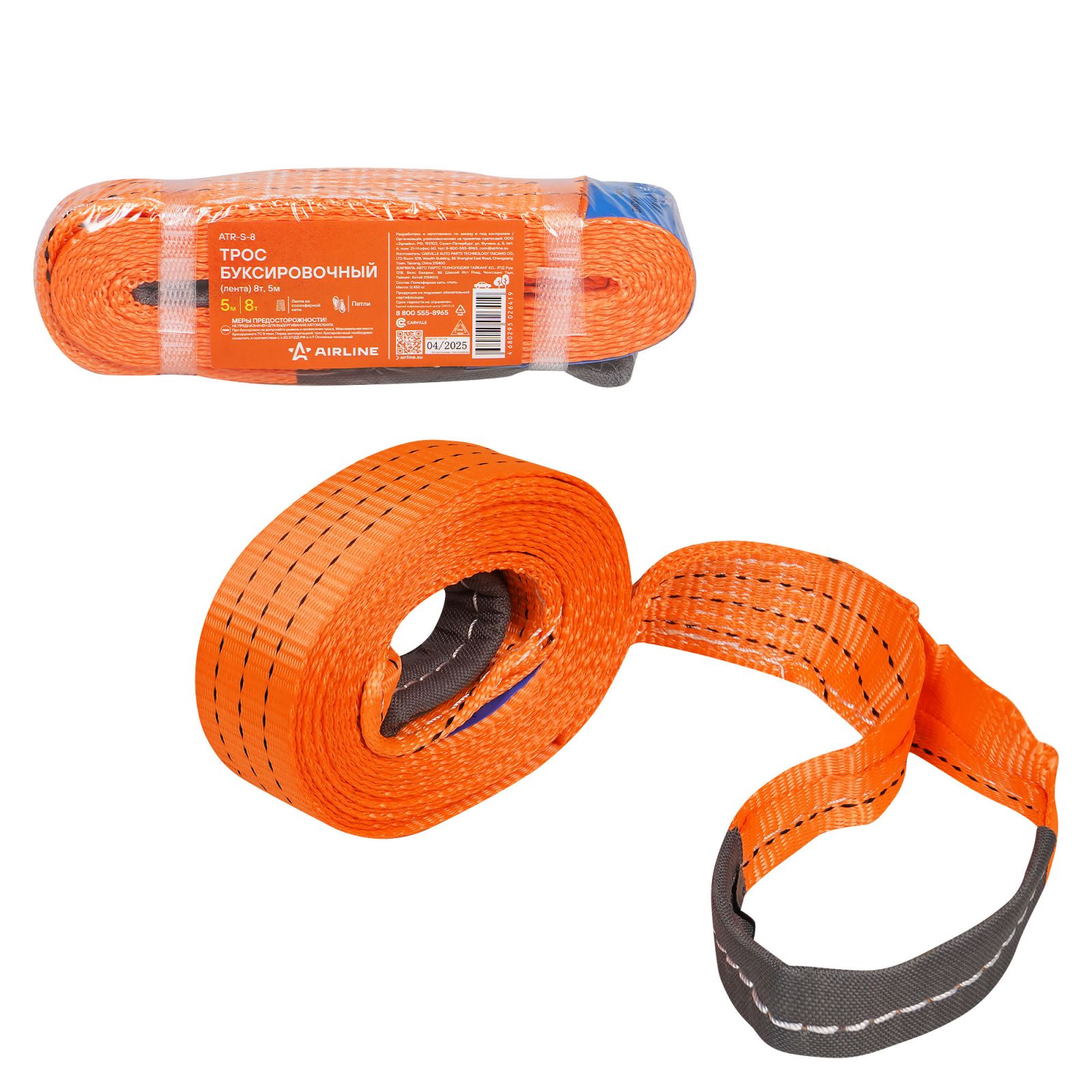 Трос буксировочный (лента) 8т, 5м, без крюков (ATR-S-8)