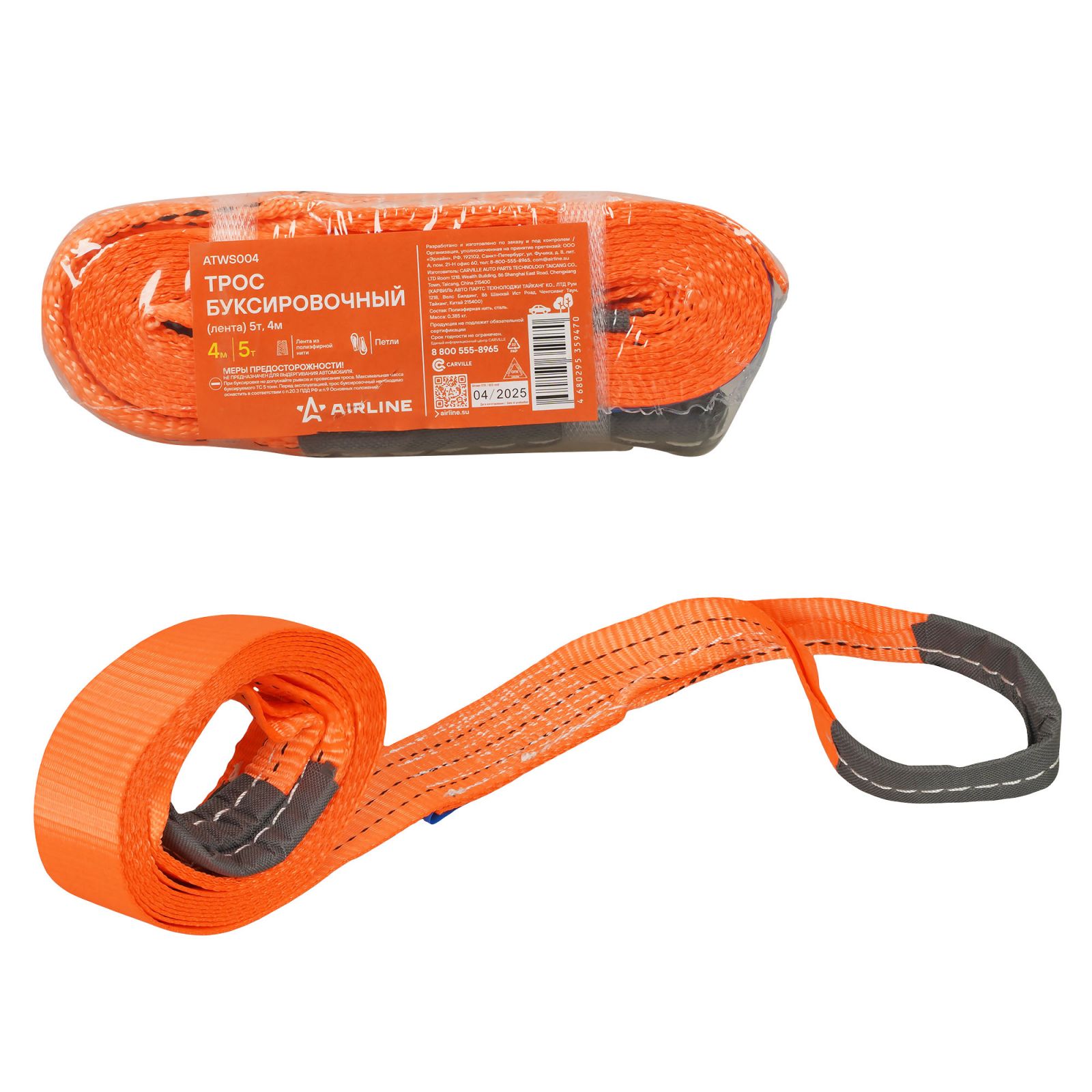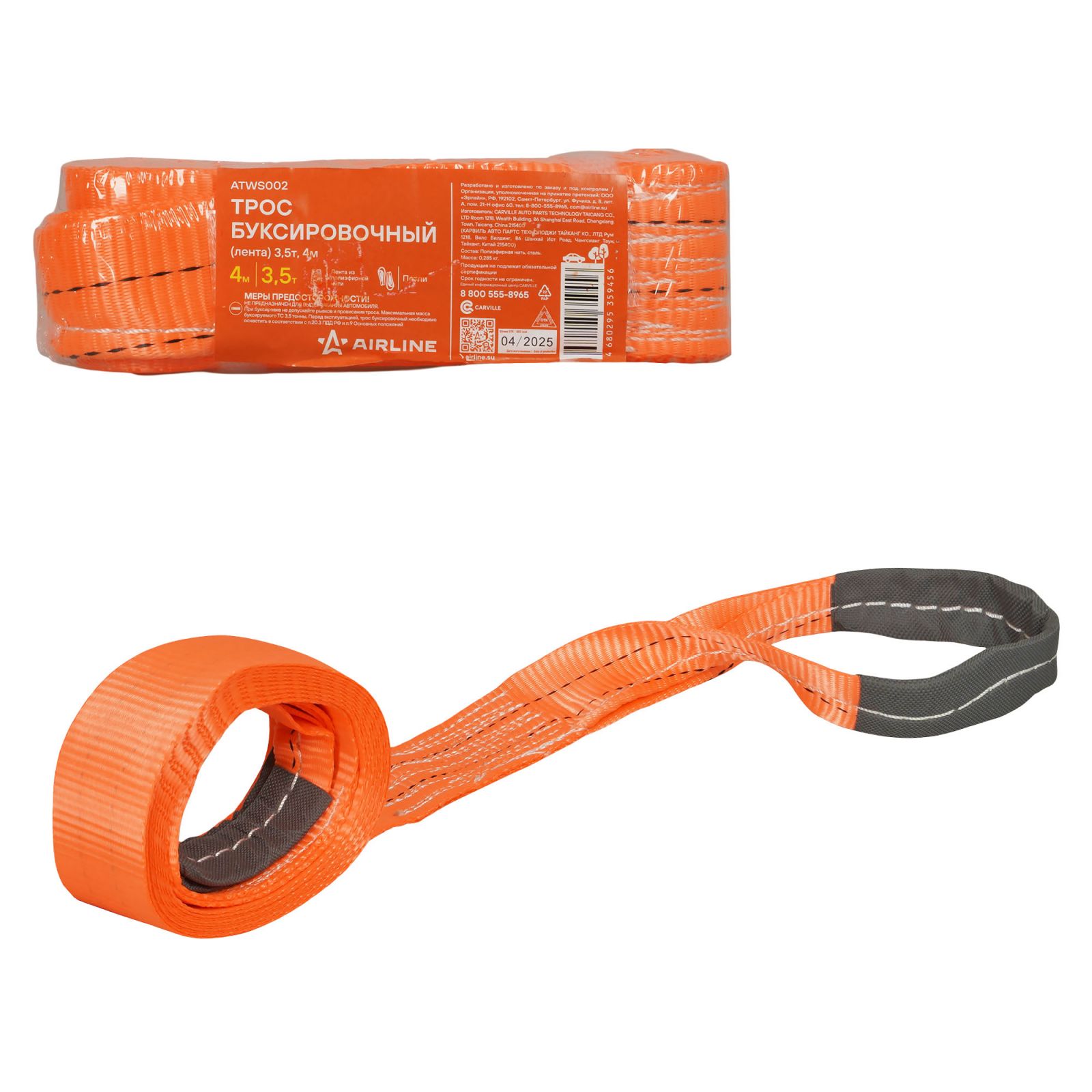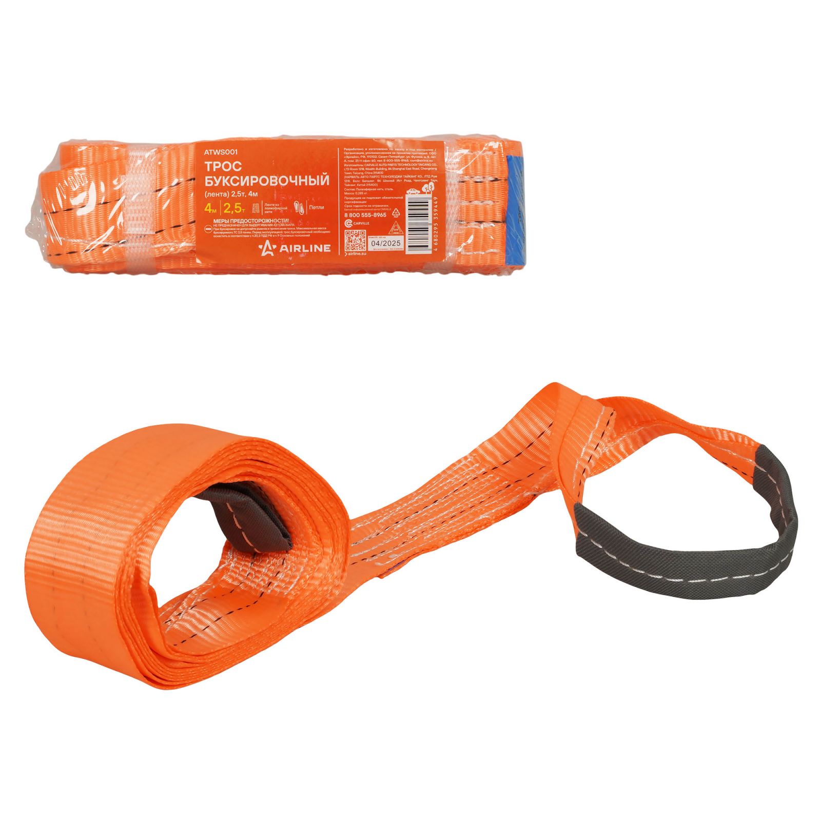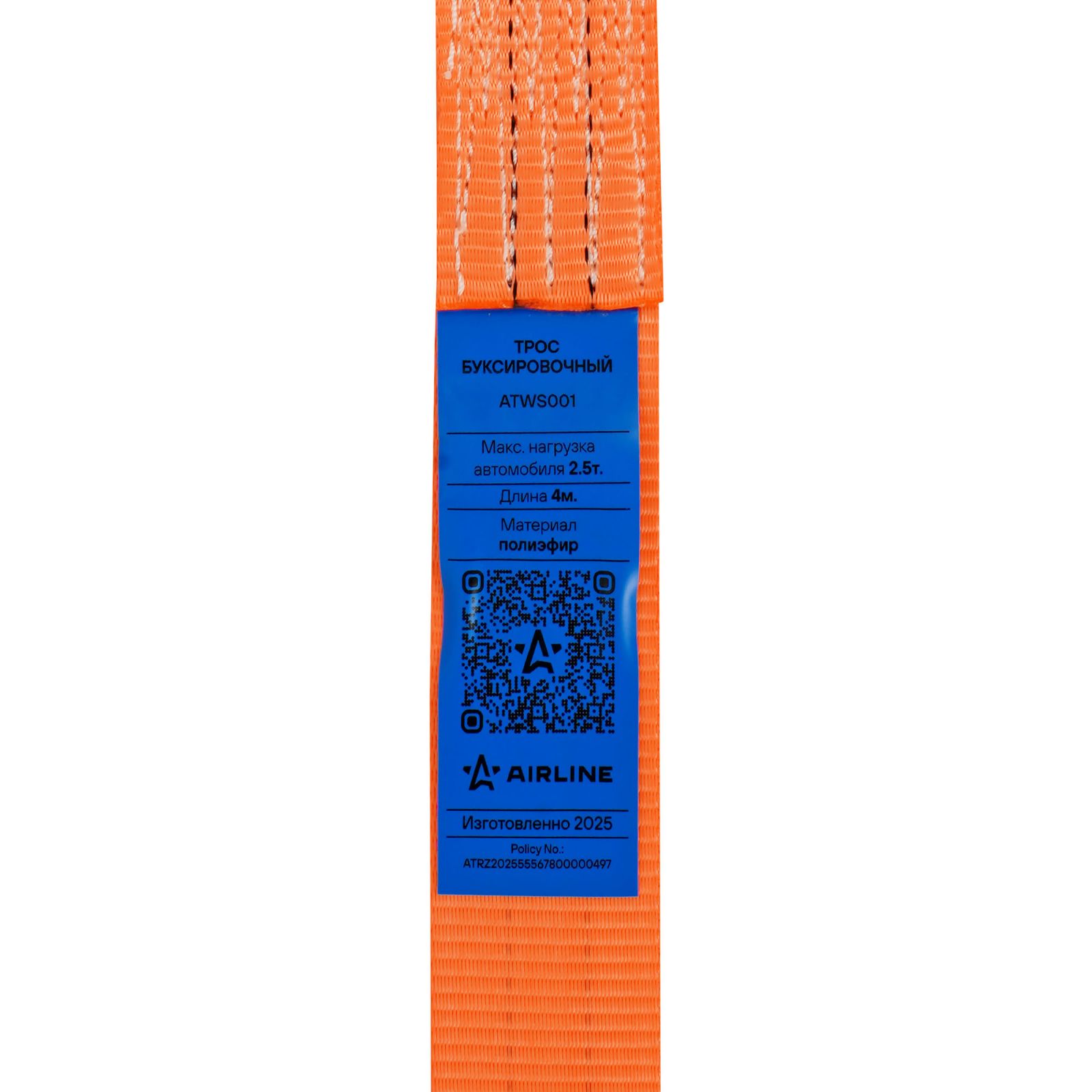 Трос буксировочный (лента) 2,5т, 4м, без крюков (ATWS001)