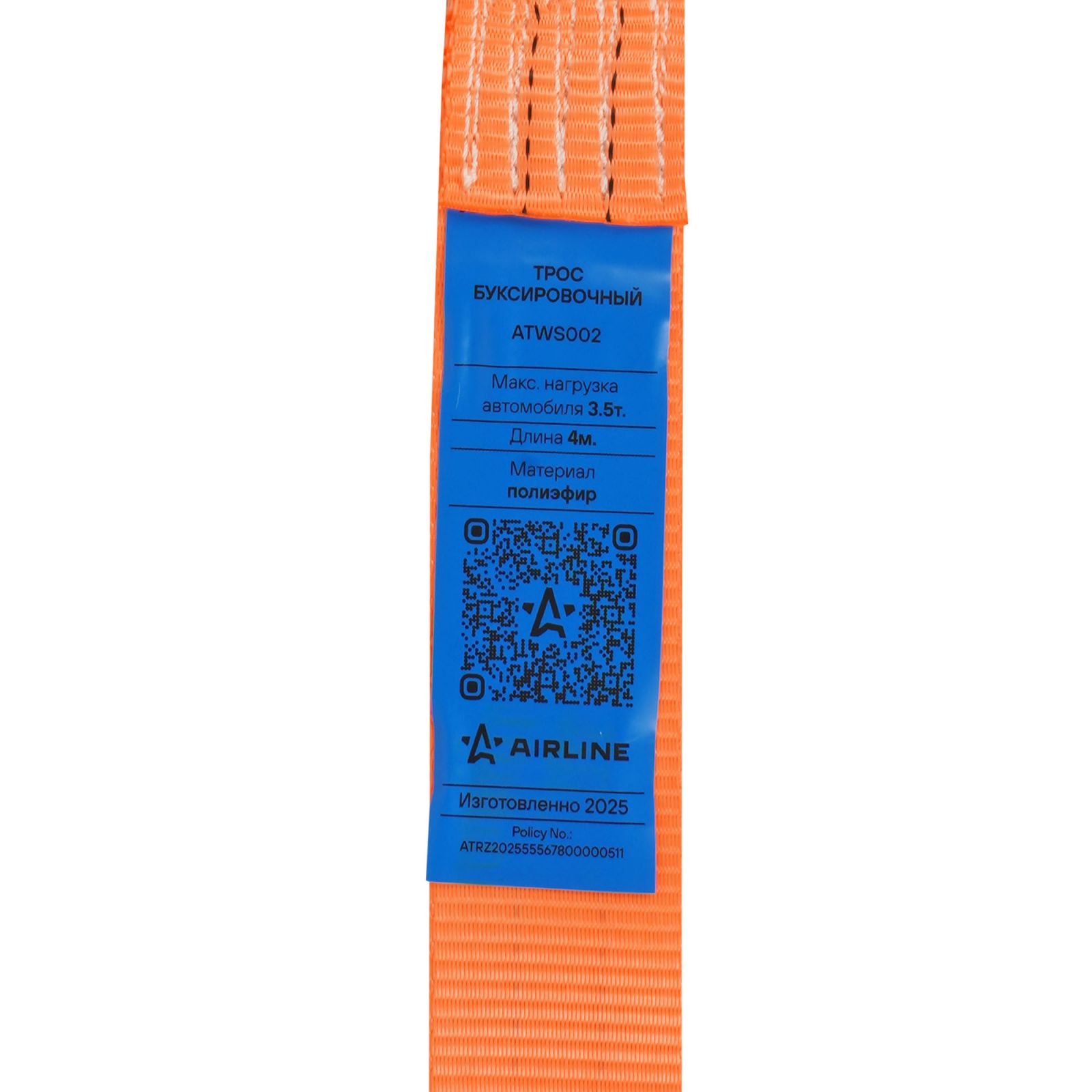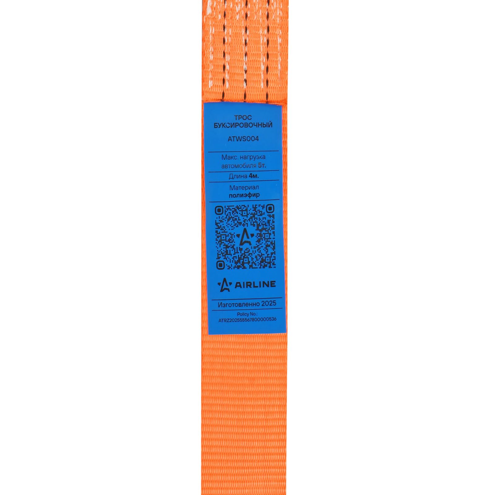 Трос буксировочный (лента) 5т, 4м, без крюков (ATWS004)