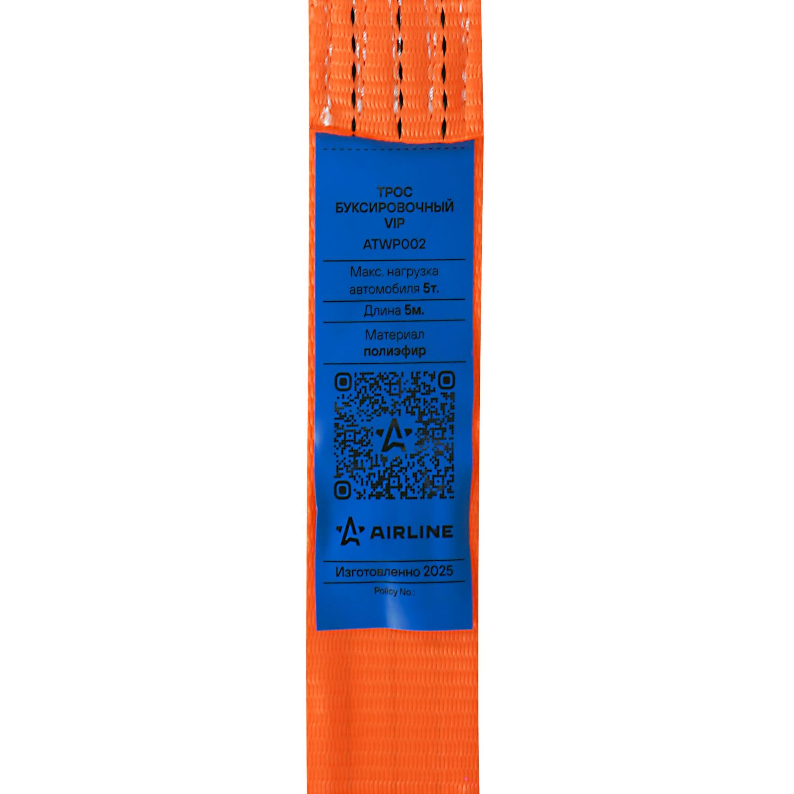 Трос VIP буксировочный усиленный (лента) 5т, 5м, 2 металл.шакла, мешок (ATWP002)