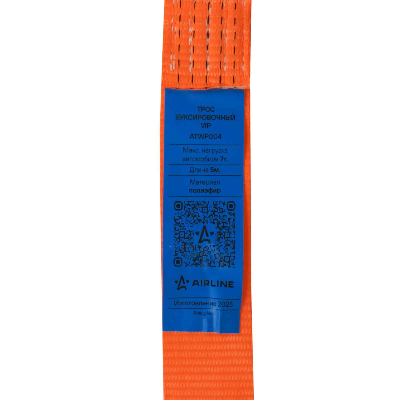 Трос VIP буксировочный усиленный (лента) 7т, 5м, 2 металл.шакла, мешок (ATWP004)