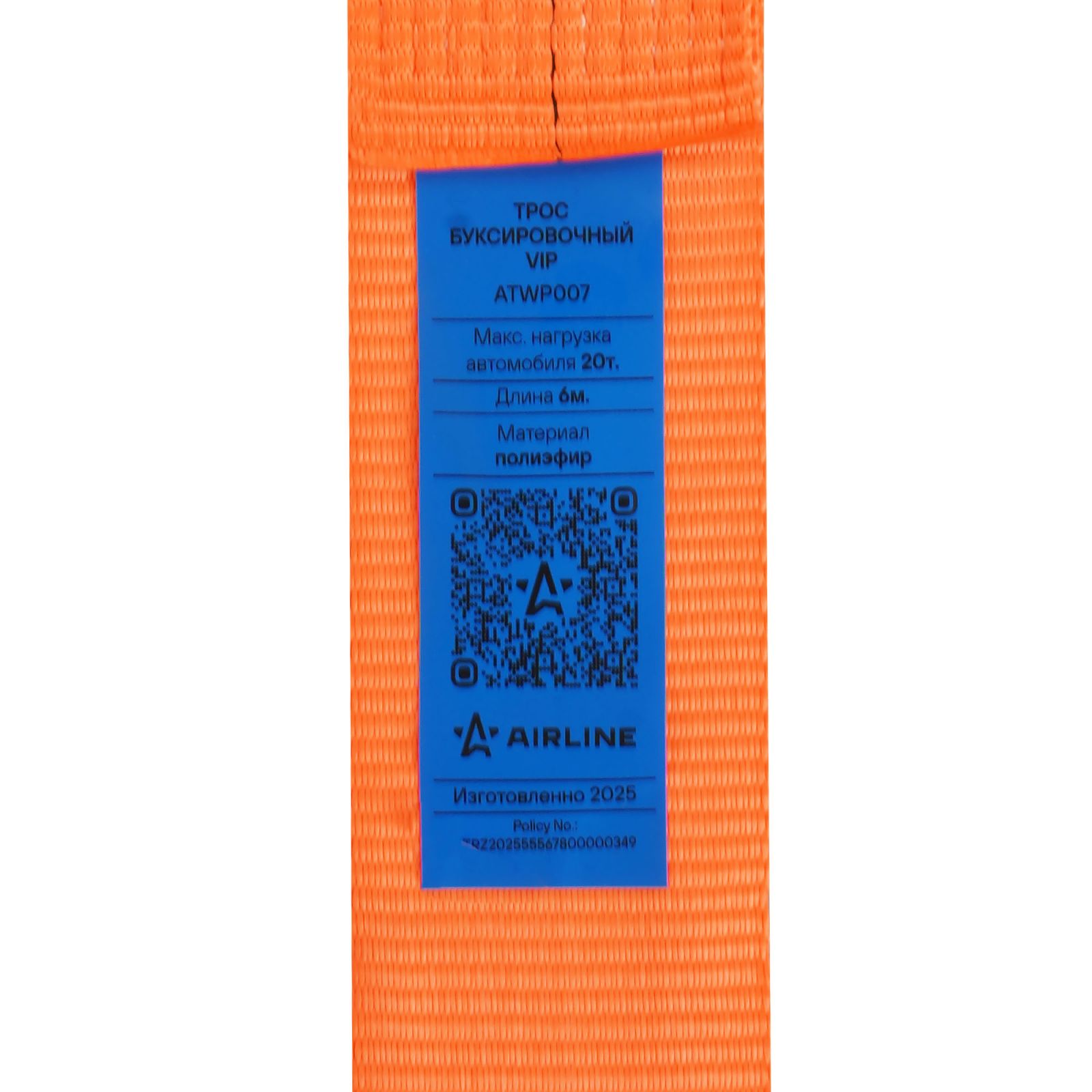 Трос VIP буксировочный усиленный (лента) 20т, 6м , 2 металл.шакла, мешок (ATWP007)