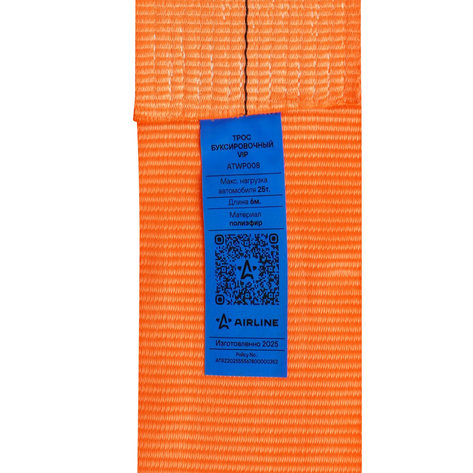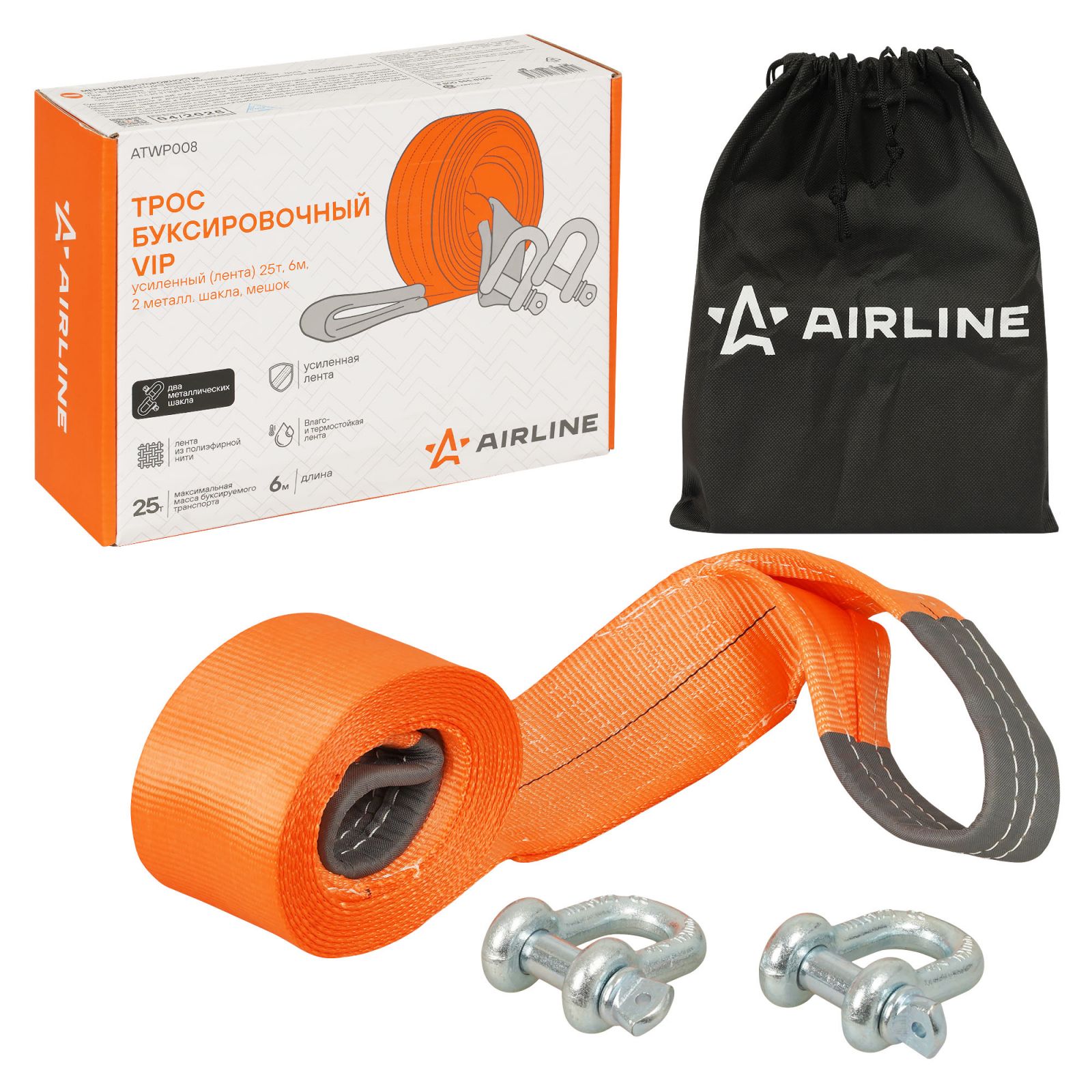 Трос VIP буксировочный усиленный (лента) 25т, 6м , 2 металл.шакла, мешок (ATWP008)
