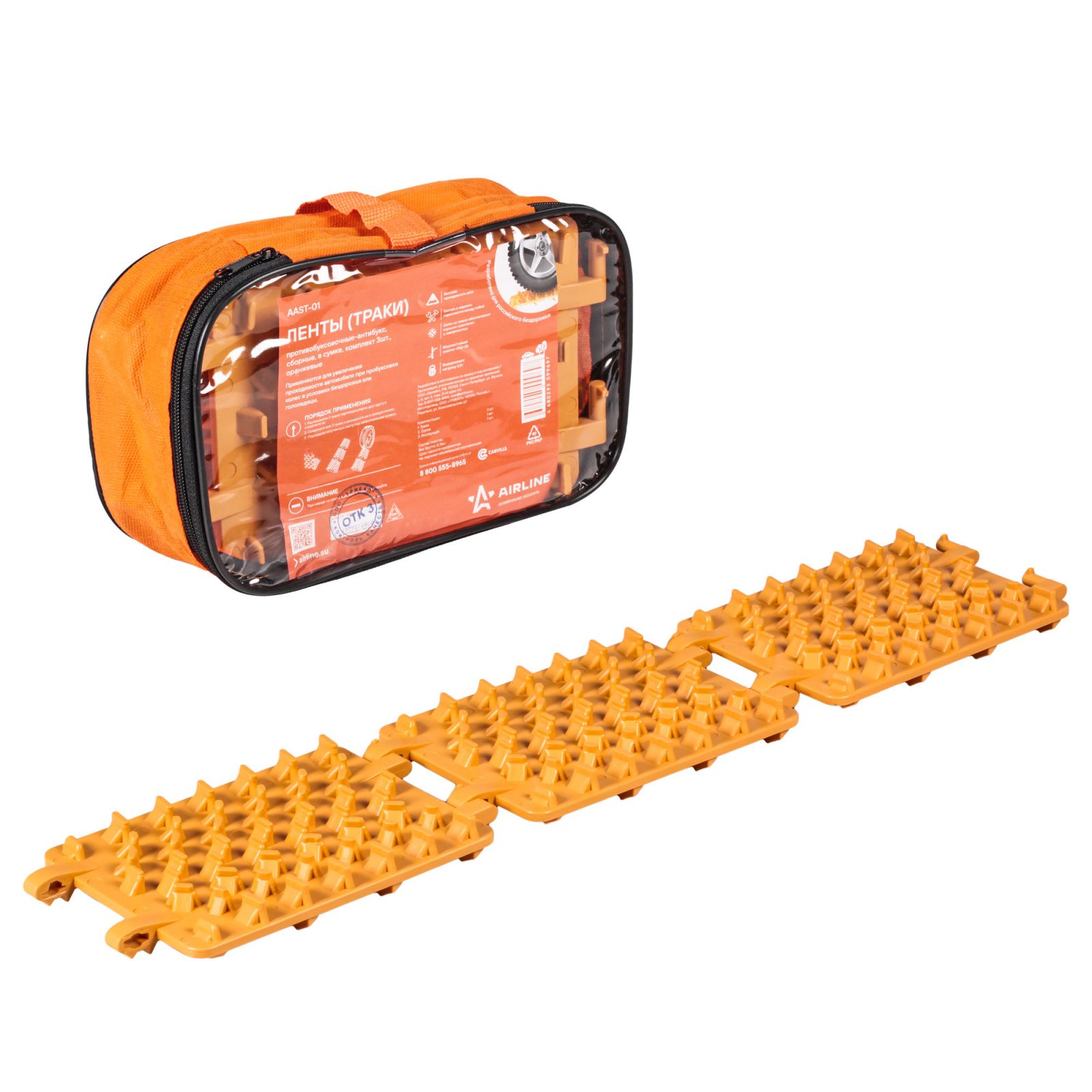 Ленты (траки) противобуксовочные-антибукс, сборные, в сумке, к-т 3 шт., оранжевые (AAST-01)