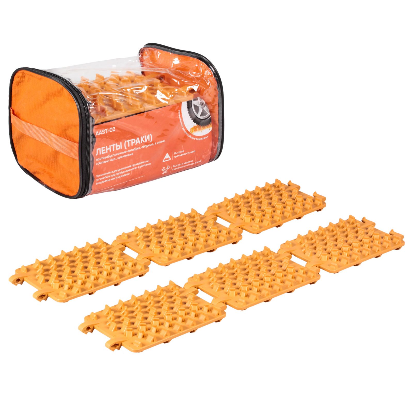 Ленты (траки) противобуксовочные-антибукс, сборные, в сумке, к-т 6 шт., оранжевые (AAST-02)