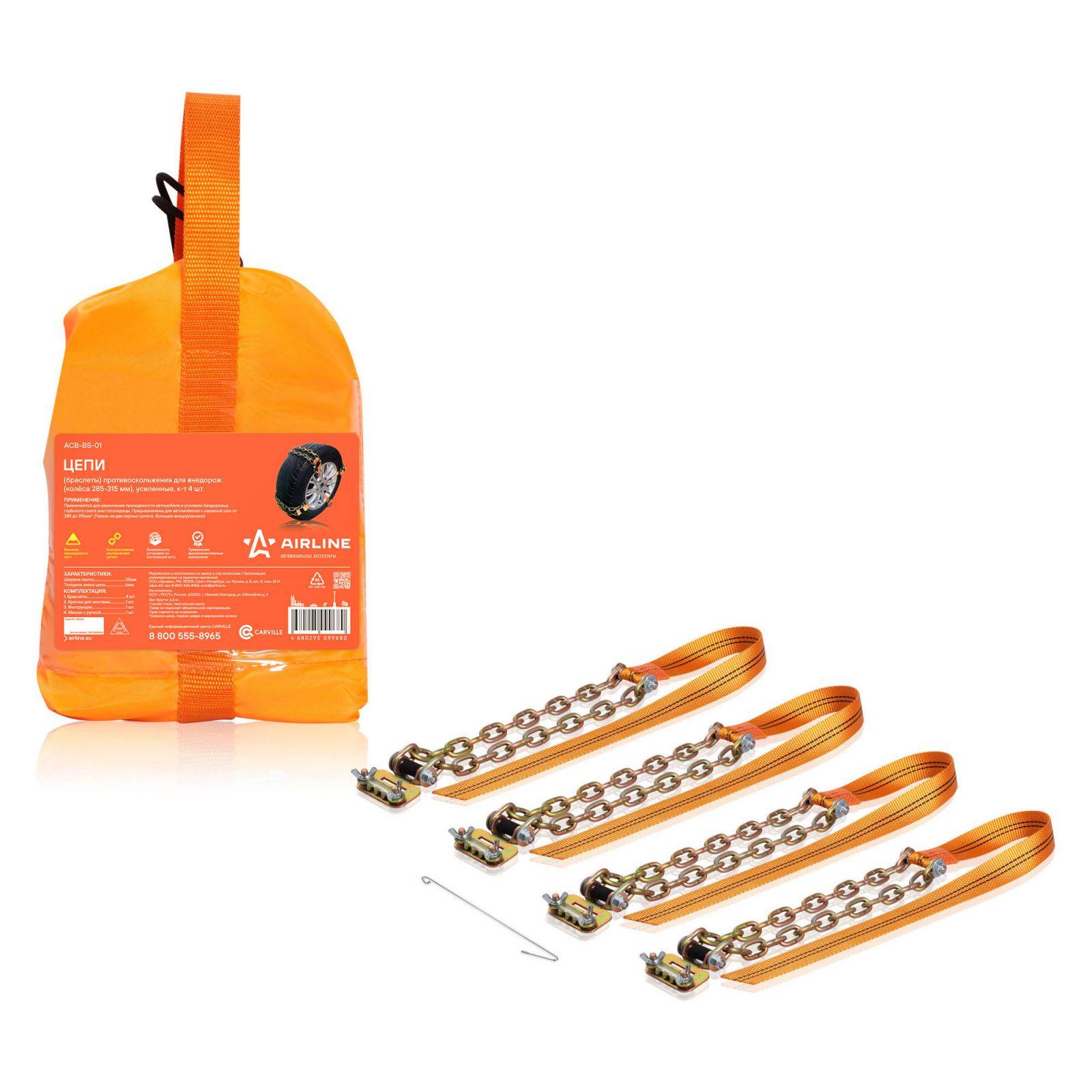 Цепи (браслеты) противоскольжения для внедорож.(колёса 285-315 мм), усиленные, к-т 4 шт.(ACB-BS-01)