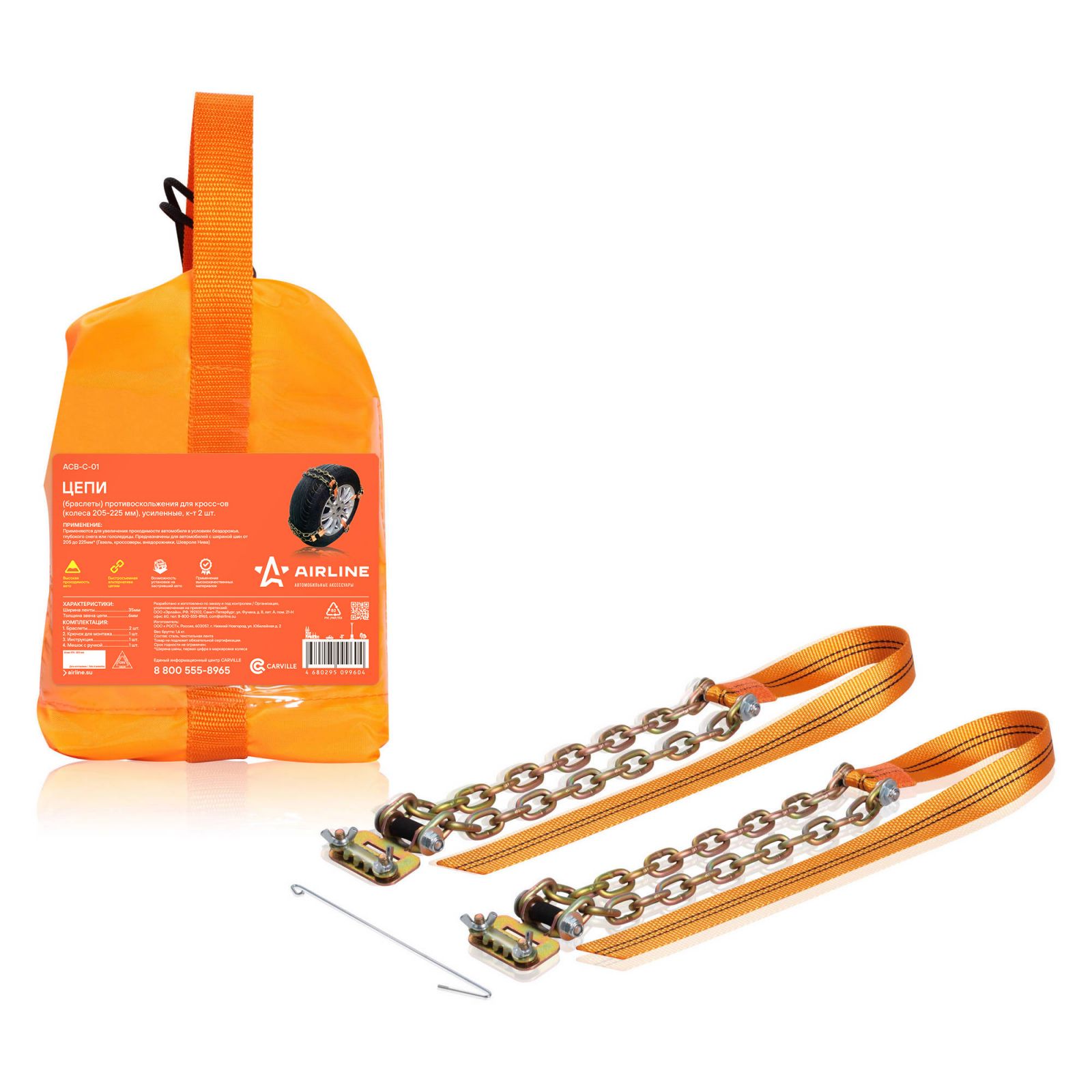 Цепи (браслеты) противоскольжения для кросс-ов (колёса 205-225 мм), усиленные, к-т 2 шт.(ACB-C-01)