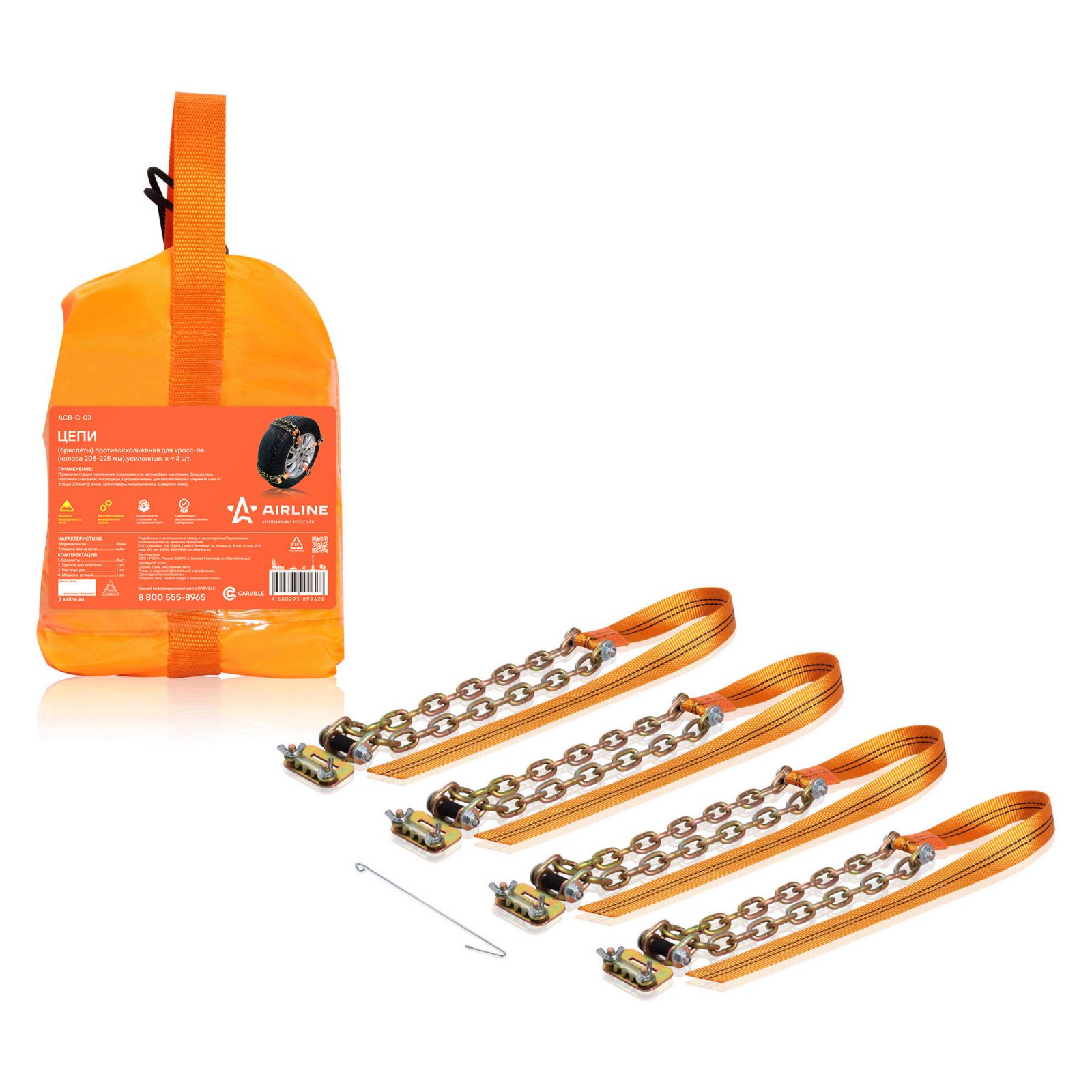 Цепи (браслеты) противоскольжения для кросс-ов (колёса 205-225 мм), усиленные, к-т 4 шт.(ACB-C-03)