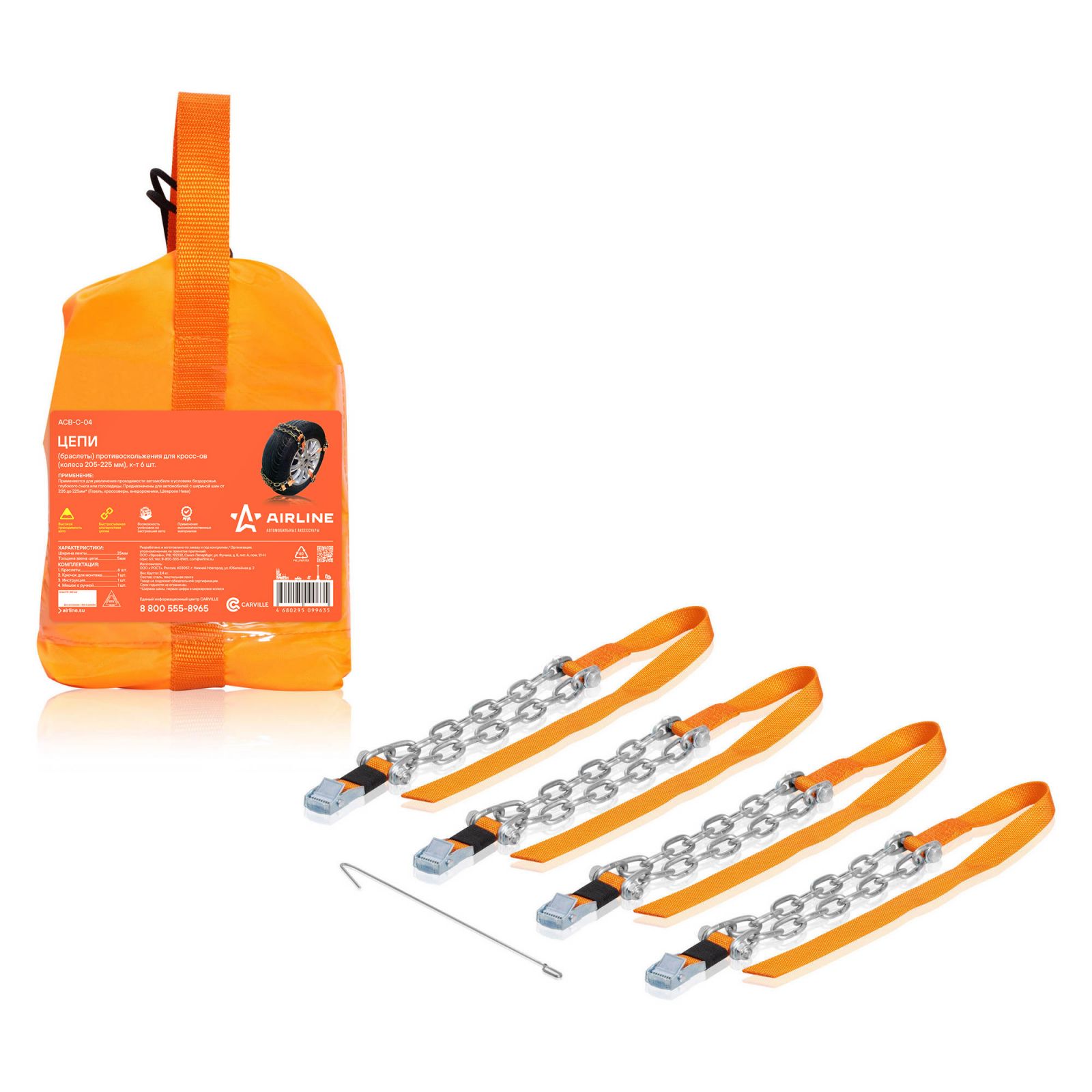 Цепи (браслеты) противоскольжения для кросс-ов (колёса 205-225 мм), к-т 6 шт.(ACB-C-04)