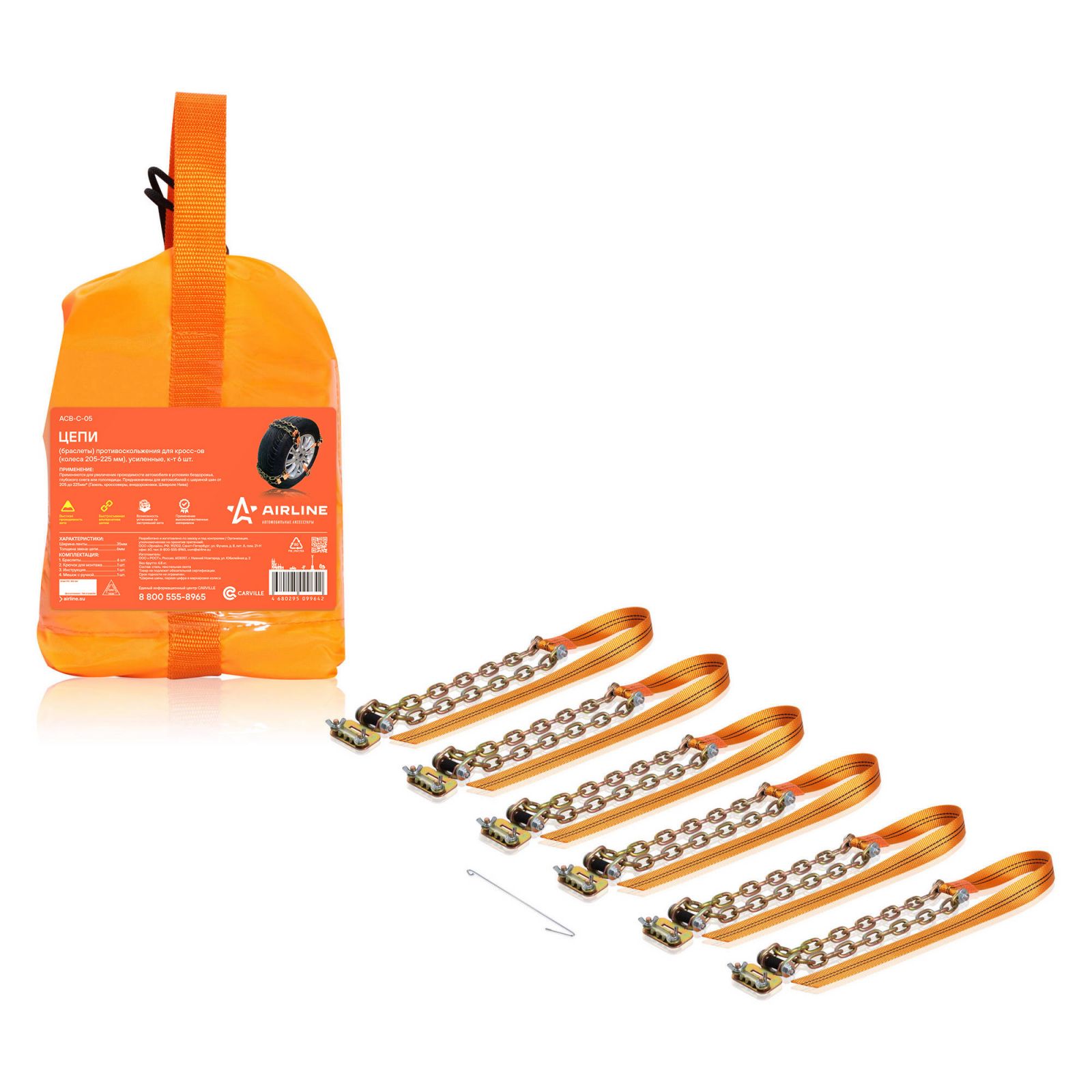 Цепи (браслеты) противоскольжения для кросс-ов (колёса 205-225 мм), усиленные, к-т 6 шт.(ACB-C-05)