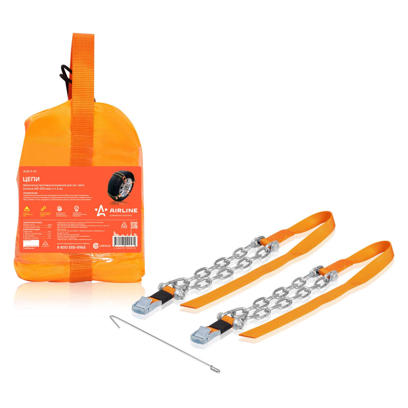 Цепи (браслеты) противоскольжения для лег.авто (колёса 165-205 мм), к-т 2 шт.(ACB-P-01)