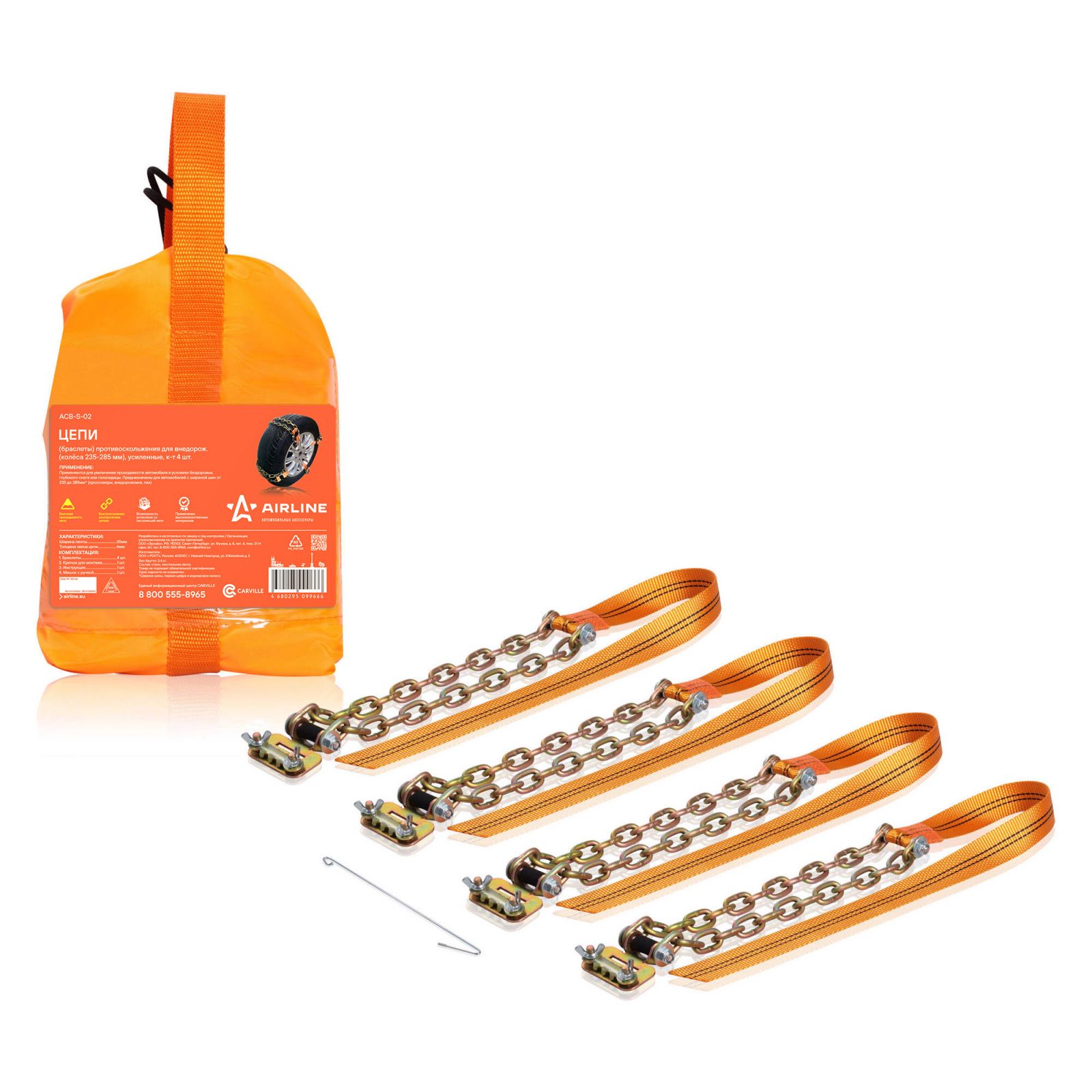 Цепи (браслеты) противоскольжения для внедорож.(колёса 235-285 мм), усиленные, к-т 4 шт.(ACB-S-02)