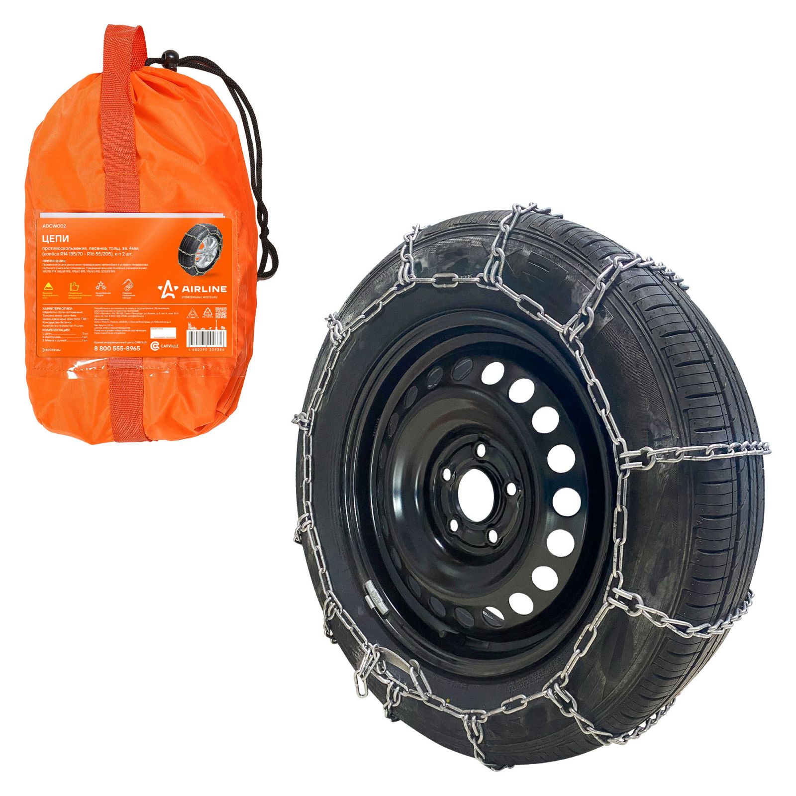 Цепи противоскольжения, лесенка, толщ.зв. 4мм (колеса R14 185/70 - R16 55/205), к-т 2 шт.(ADCW002)