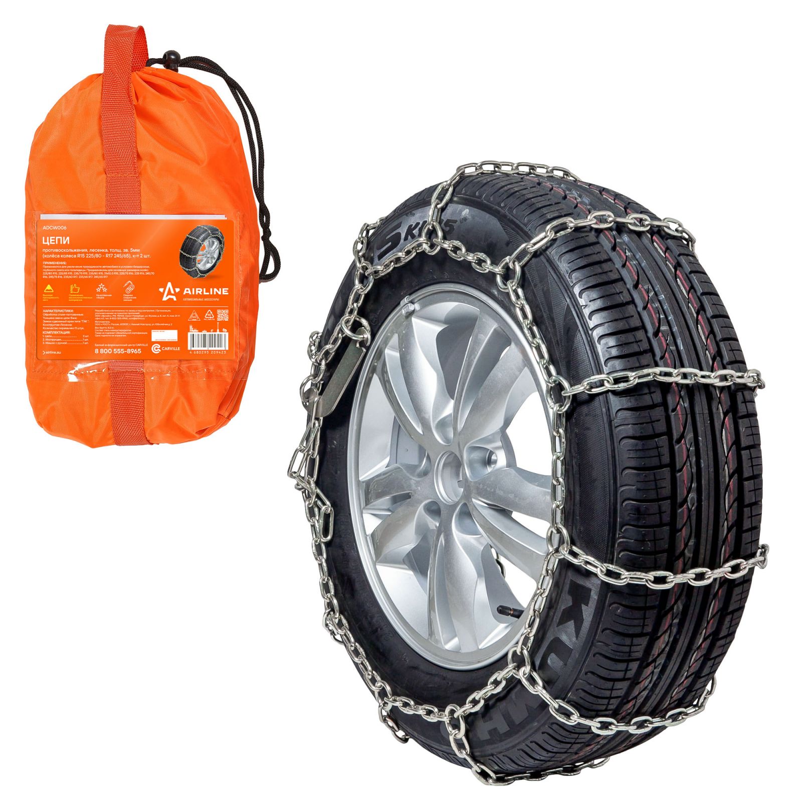 Цепи противоскольжения, лесенка, толщ.зв. 5мм (колеса R15 225/80 - R17 245/65), к-т 2 шт.(ADCW006)