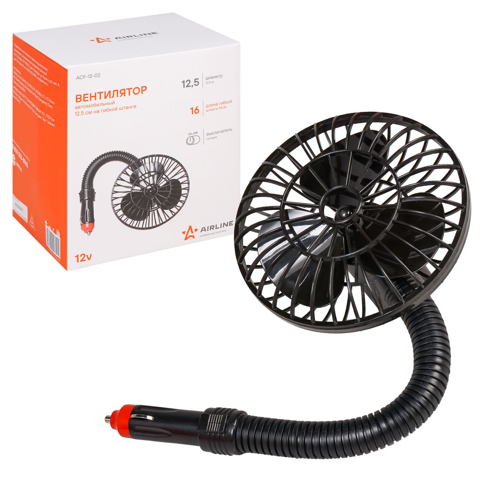 Вентилятор в салон 12,5см 12В, гибкая штанга, в прикуриватель (ACF-12-02)