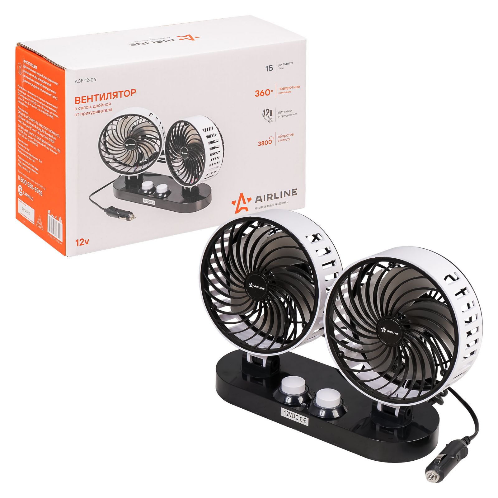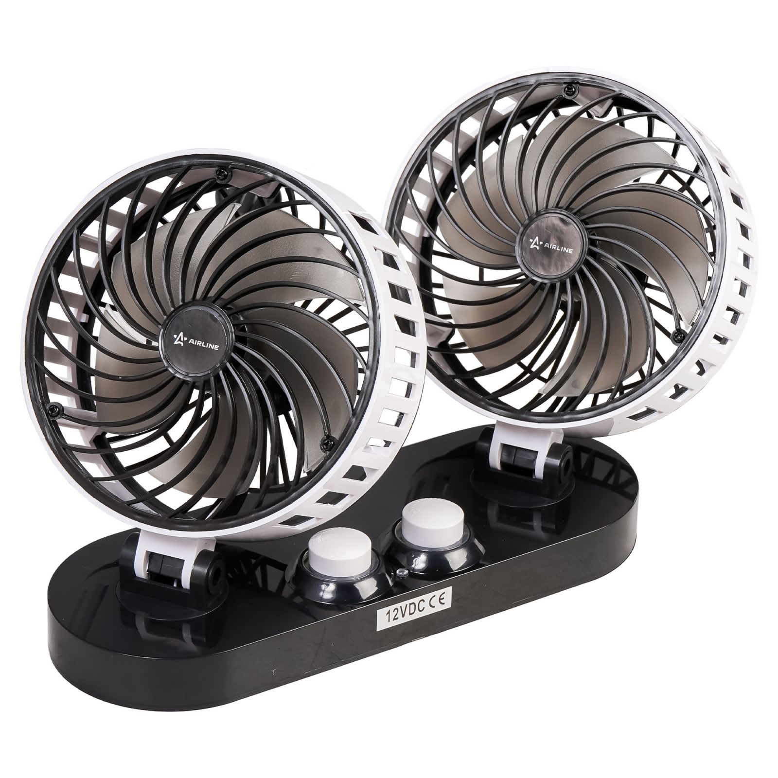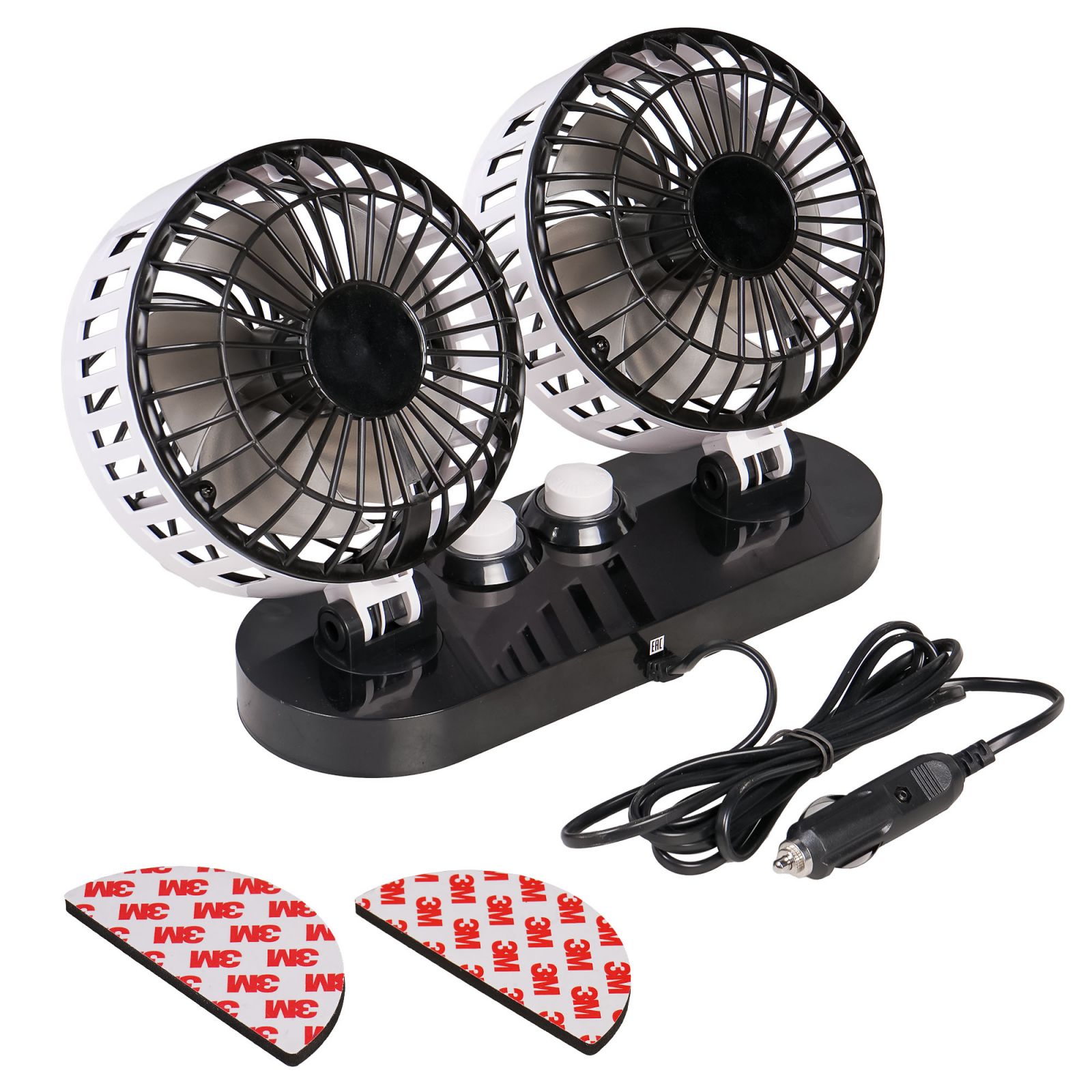 Вентилятор в салон двойной 2x12см 12В, общая регулировка, скотч (ACF-12-05)