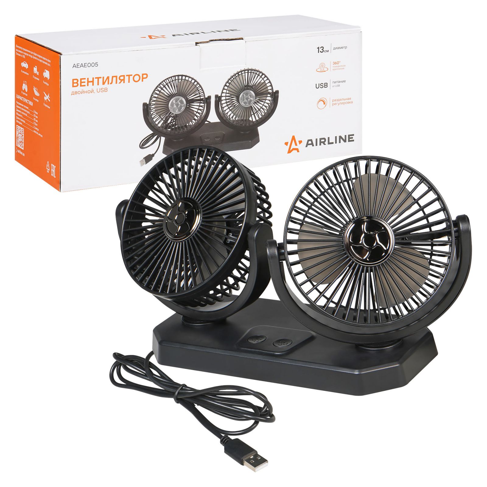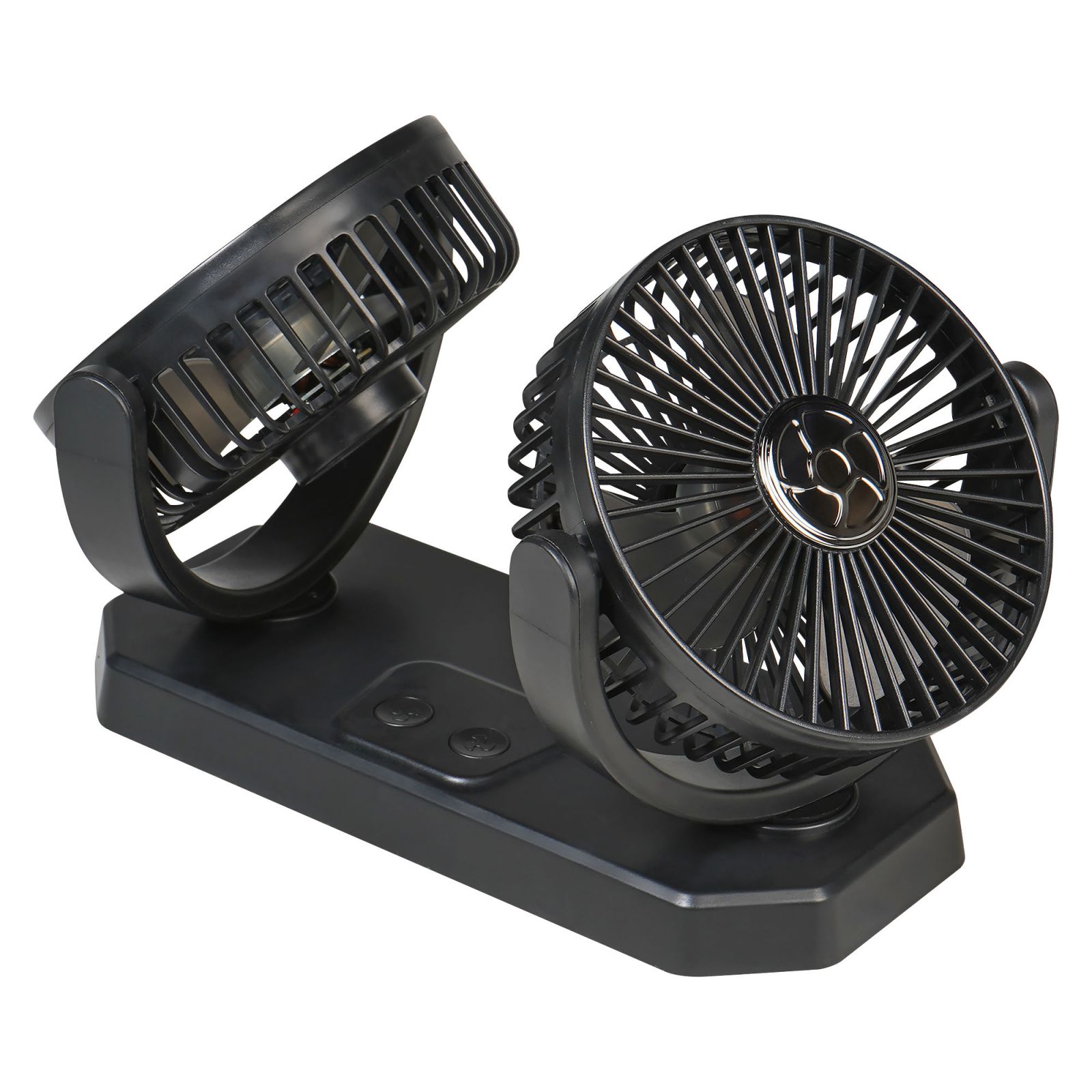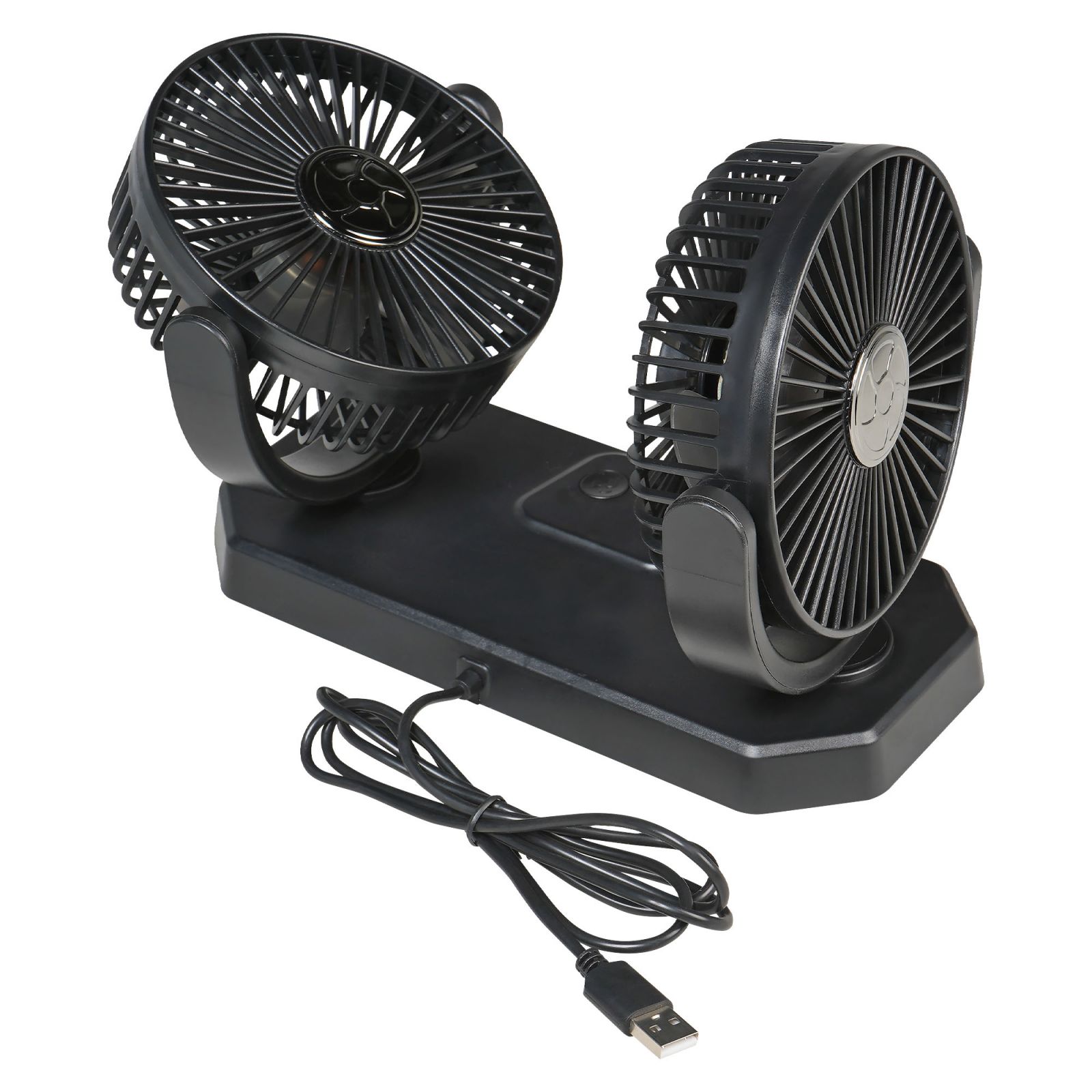 Вентилятор в салон двойной поворотный 360, 2x13см, 5В USB, раздельная регулировка, скотч (AEAE005)