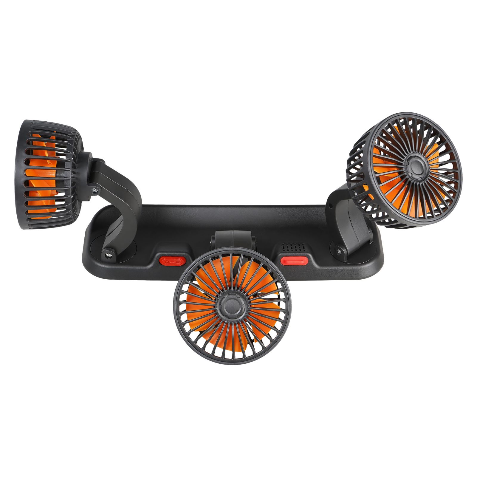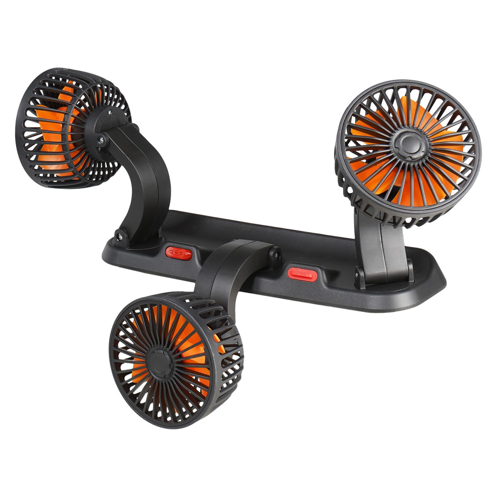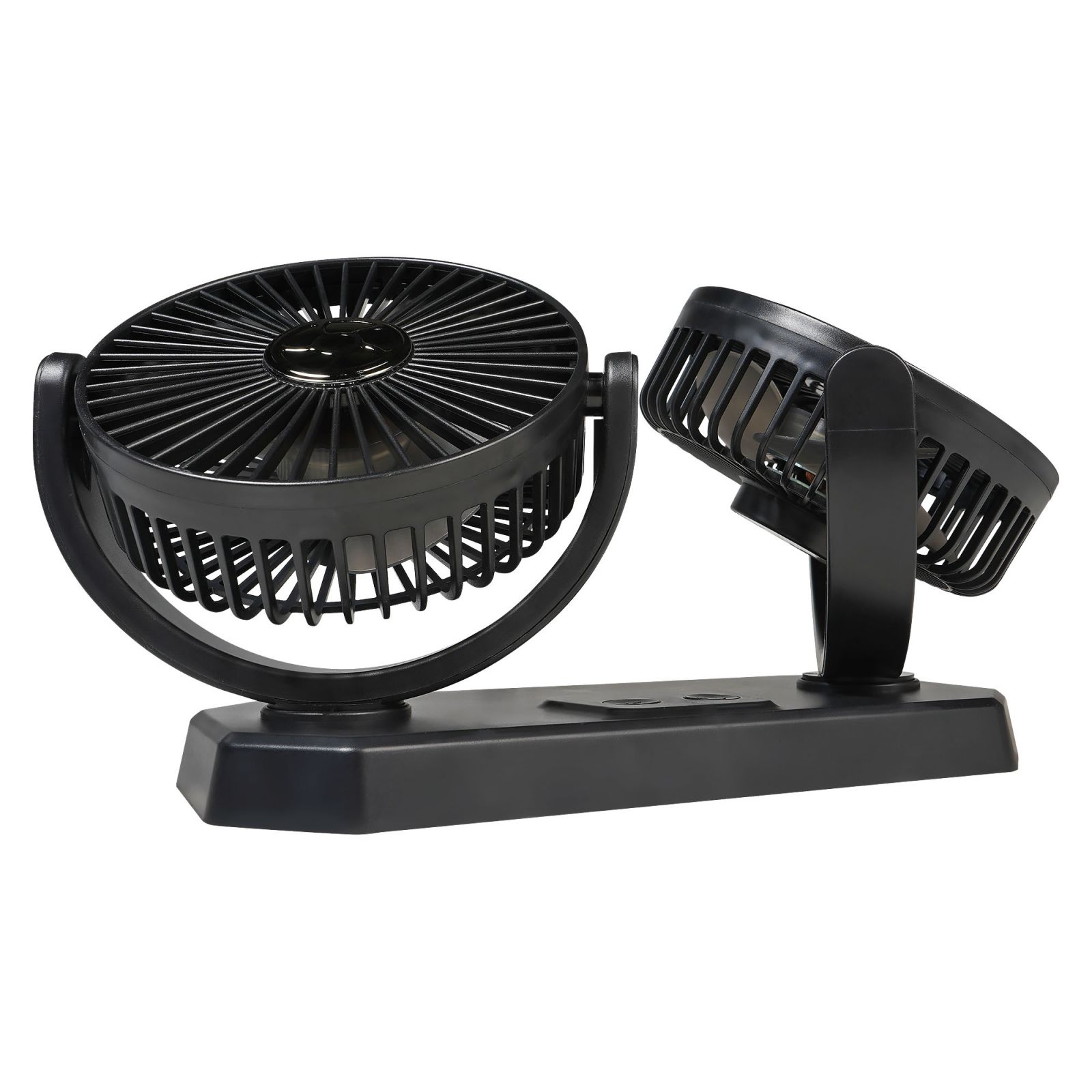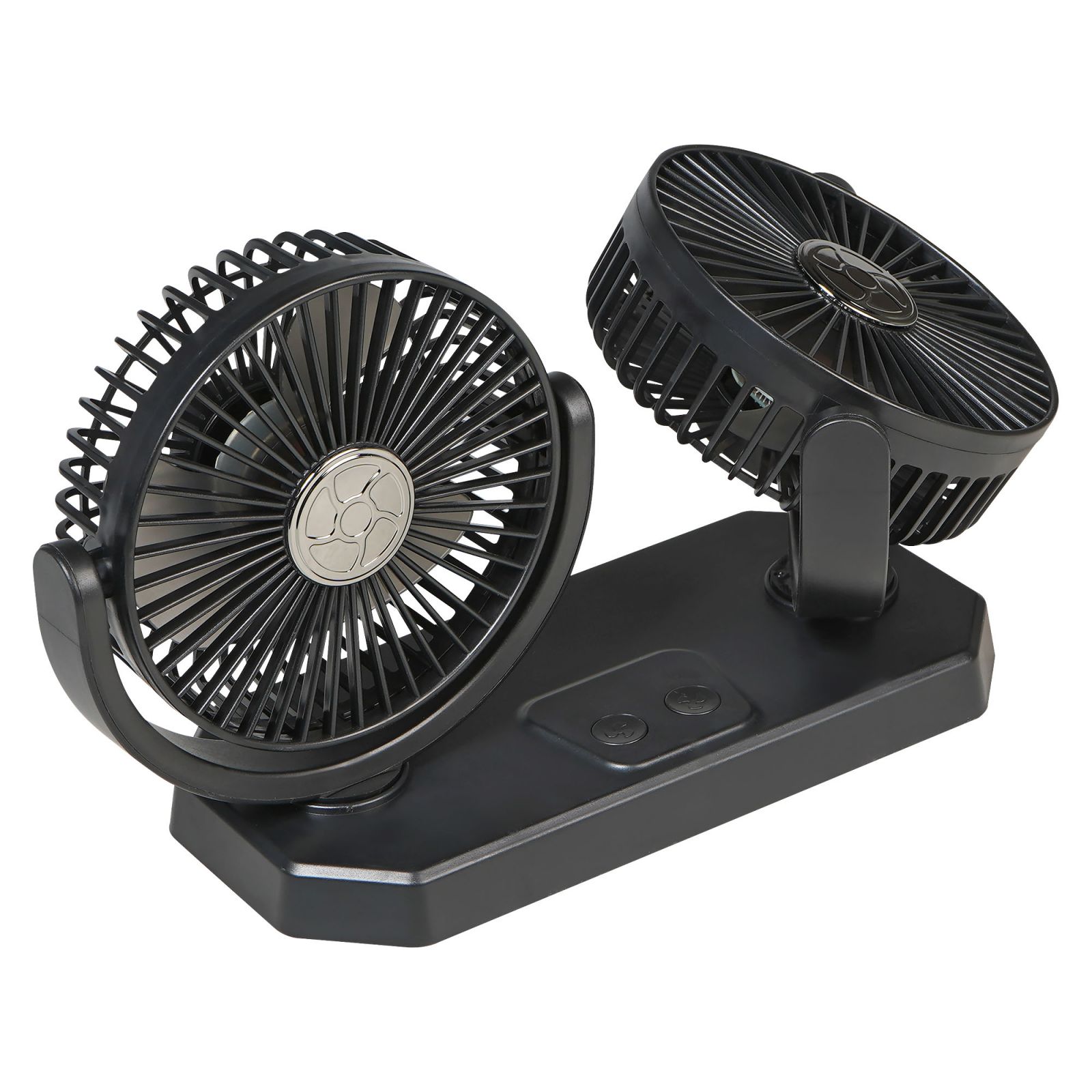 Вентилятор в салон двойной поворотный 360, 2x13см, 5В USB, раздельная регулировка, скотч (AEAE005)