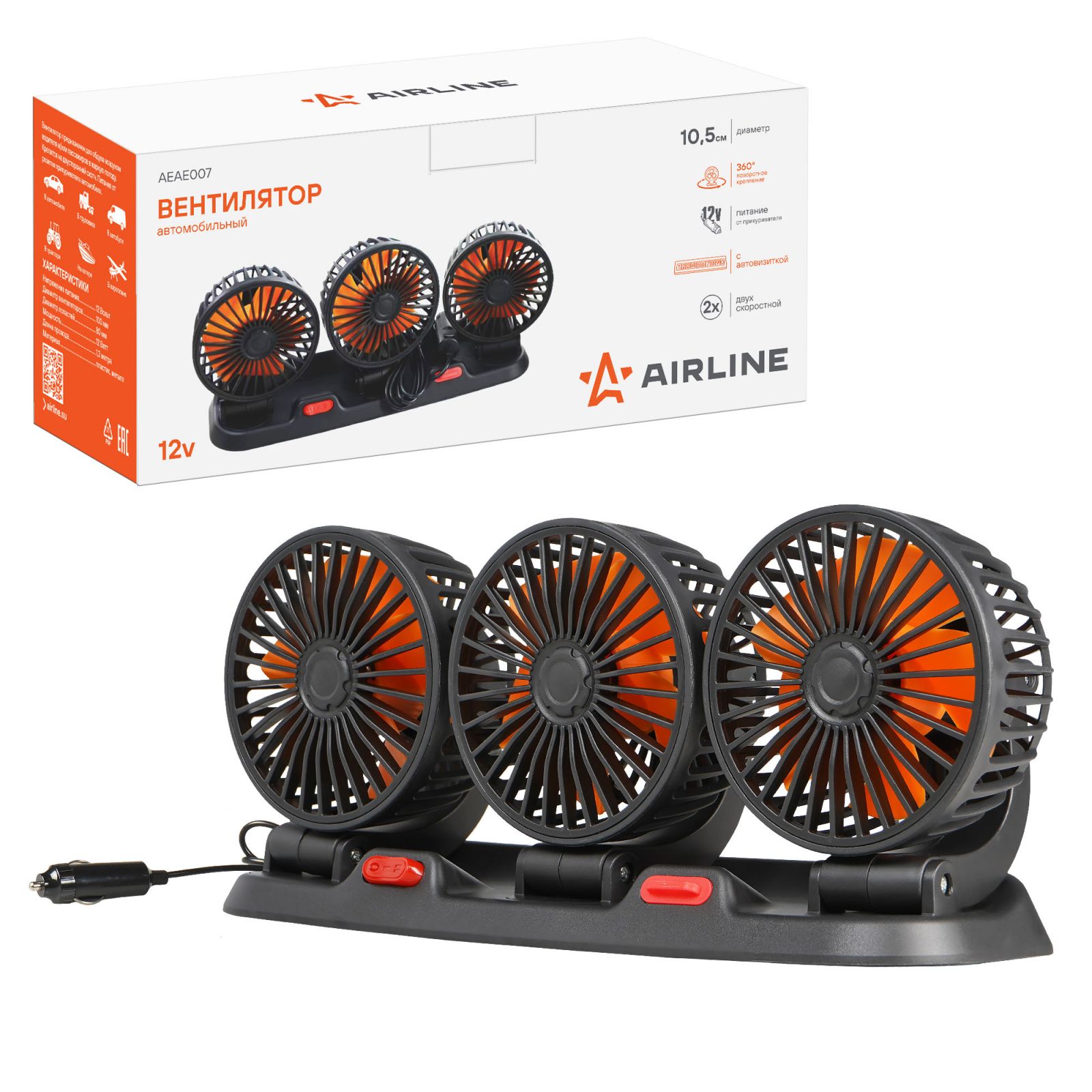 Вентилятор в салон тройной поворотный 360, 3x10.5см, 12В, общая регулировка, скотч (AEAE007)