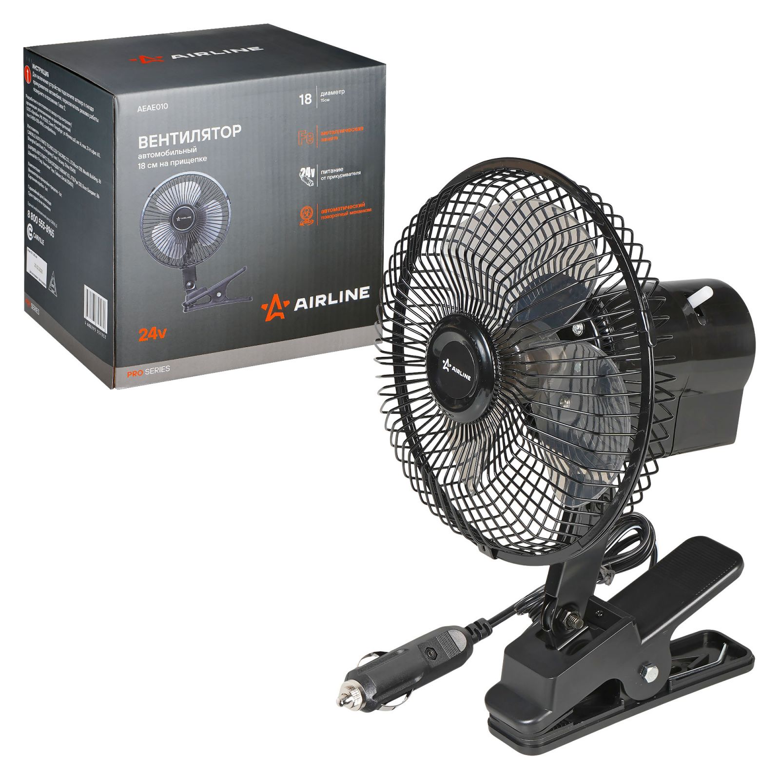 Вентилятор в салон 18см, 24В PRO, с автоповоротом, металл. корпус, прищепка (AEAE010)