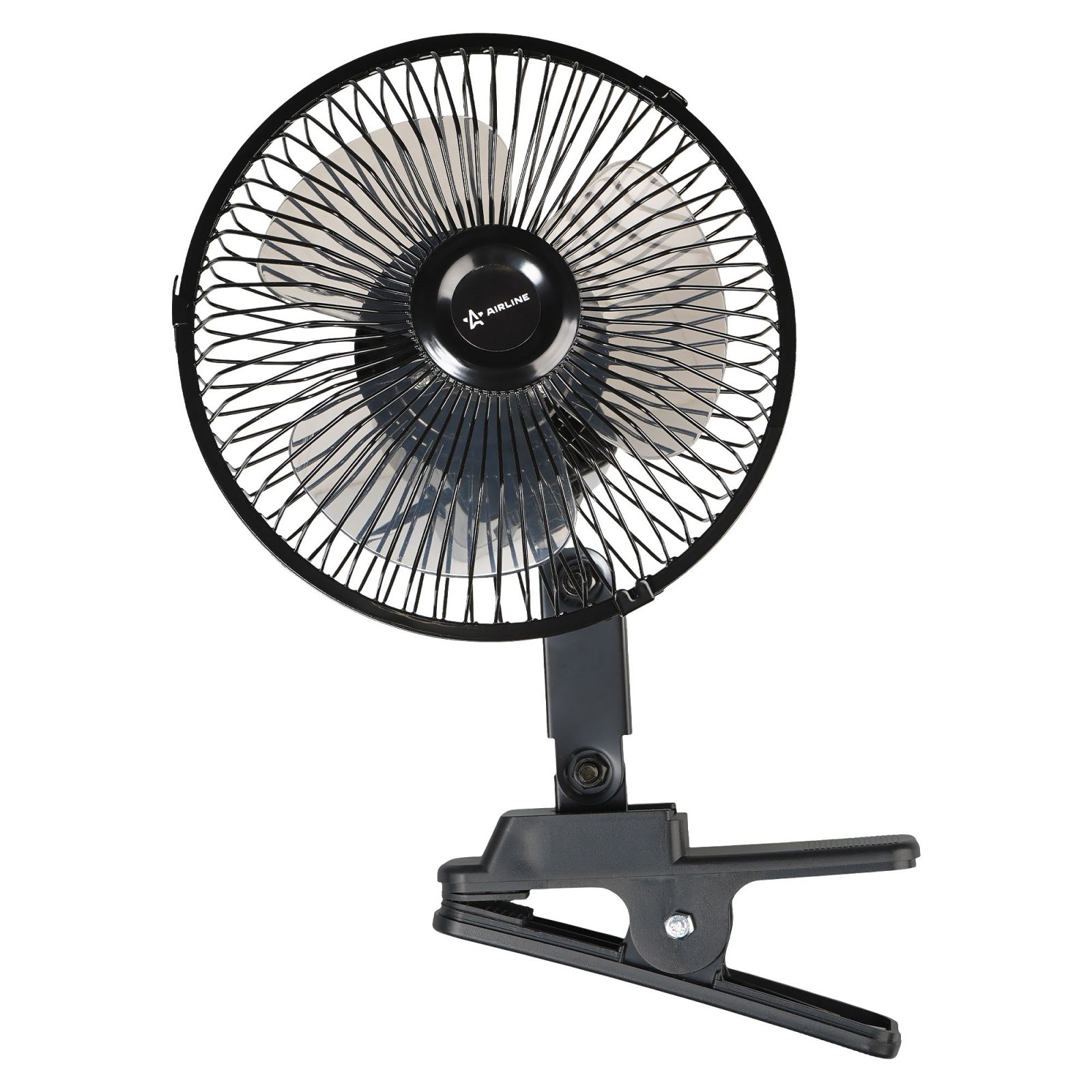 Вентилятор в салон 15см 12В, с автоповоротом, металл.корпус, прищепка (ACF-15-03)