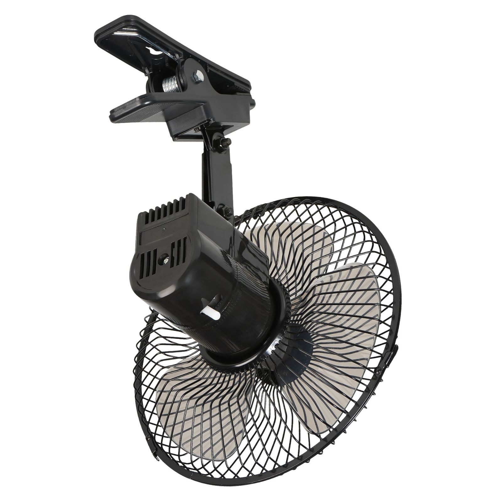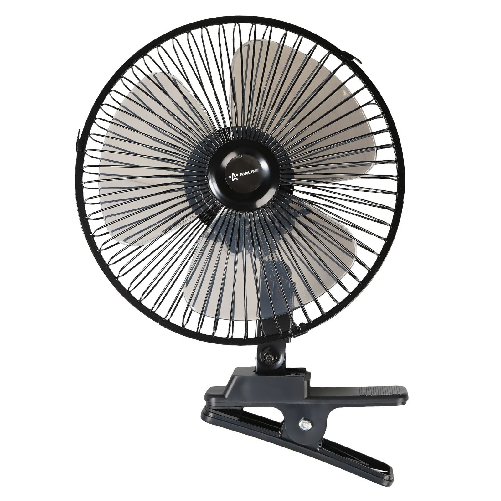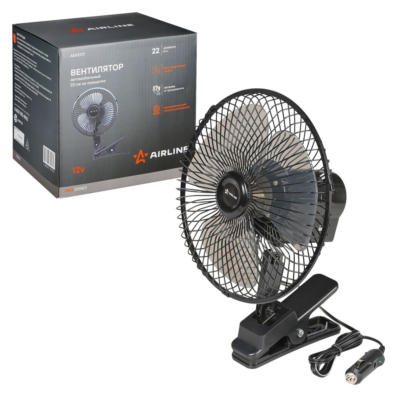 Вентилятор в салон 22см, 12В PRO, с автоповоротом, металл.корпус, прищепка (AEAE011)