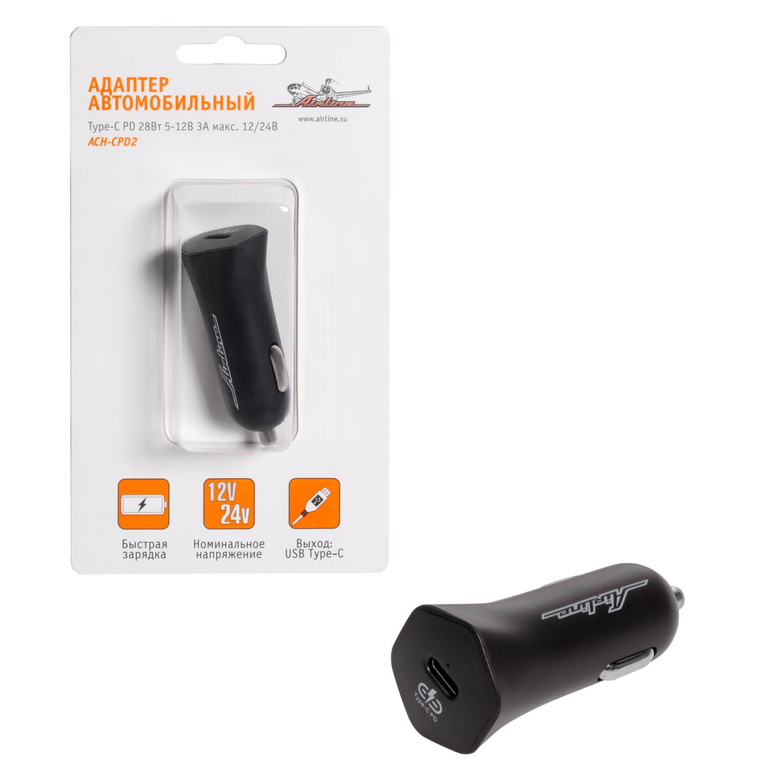 Адаптер автомобильный Type-C PD 28Вт, 12/24В (ACH-CPD2)